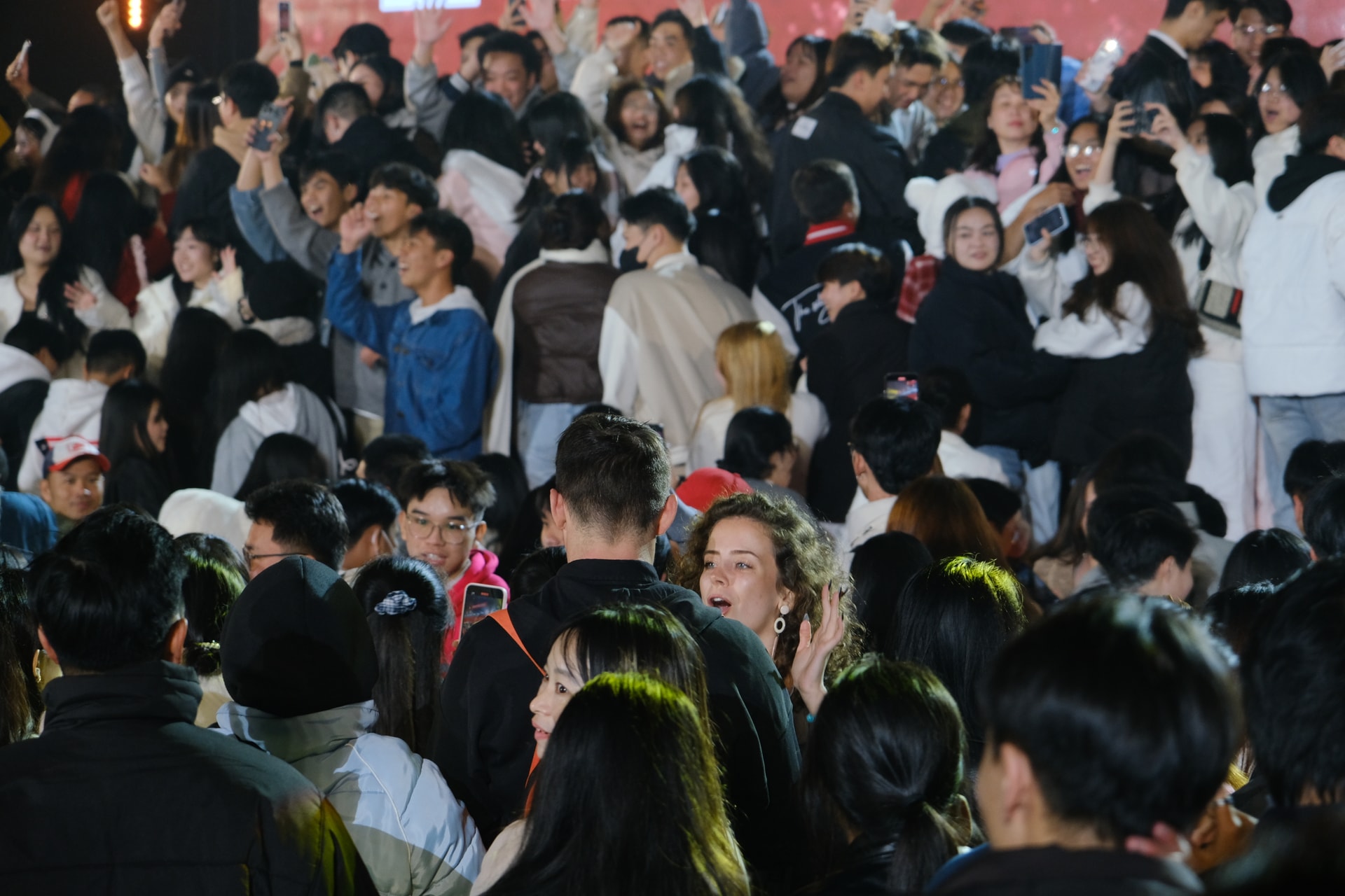 Du khách nước ngoài hòa mình vào không khí đón năm mới cùng các bạn trẻ tại Đà Lạt