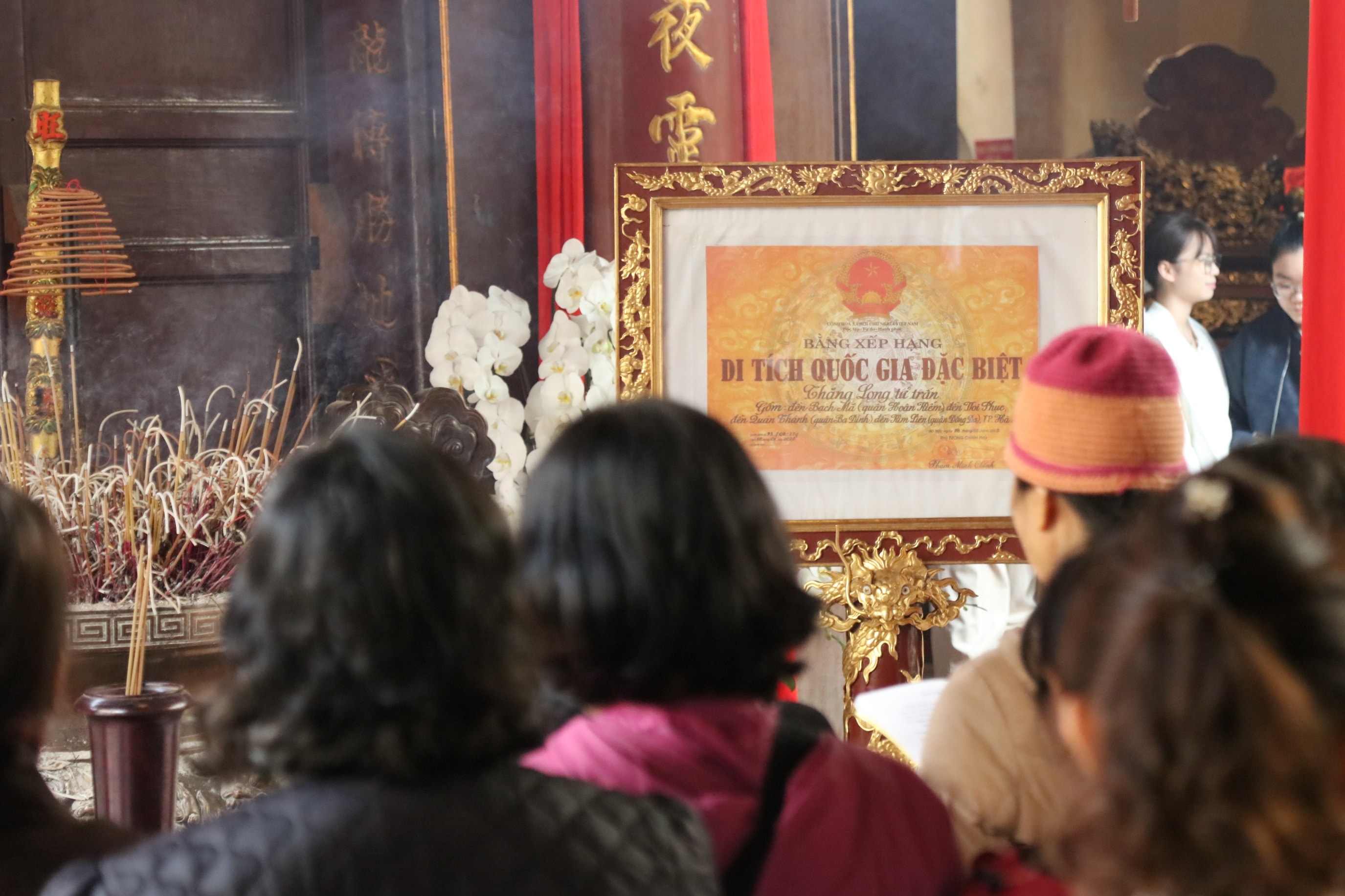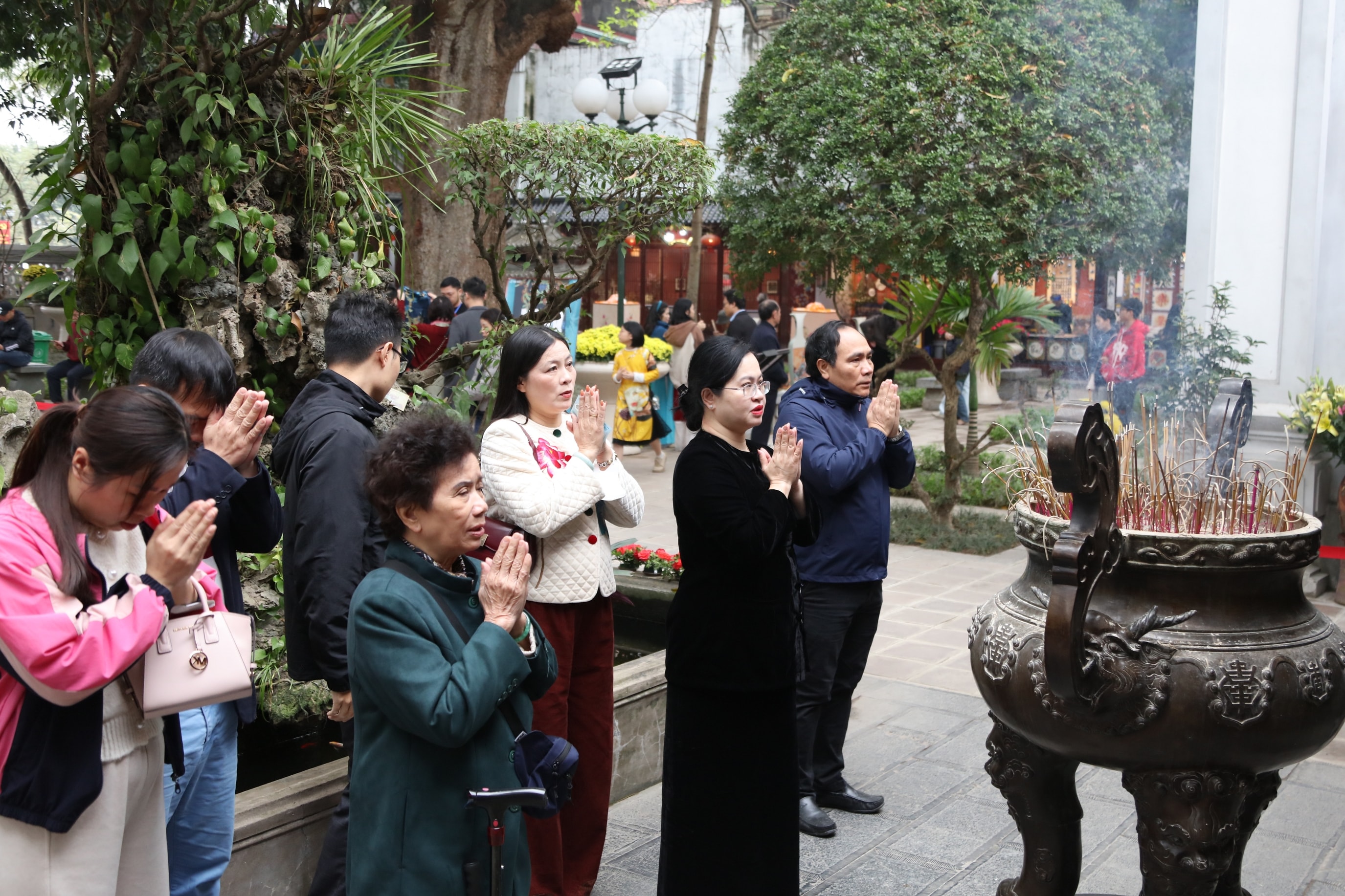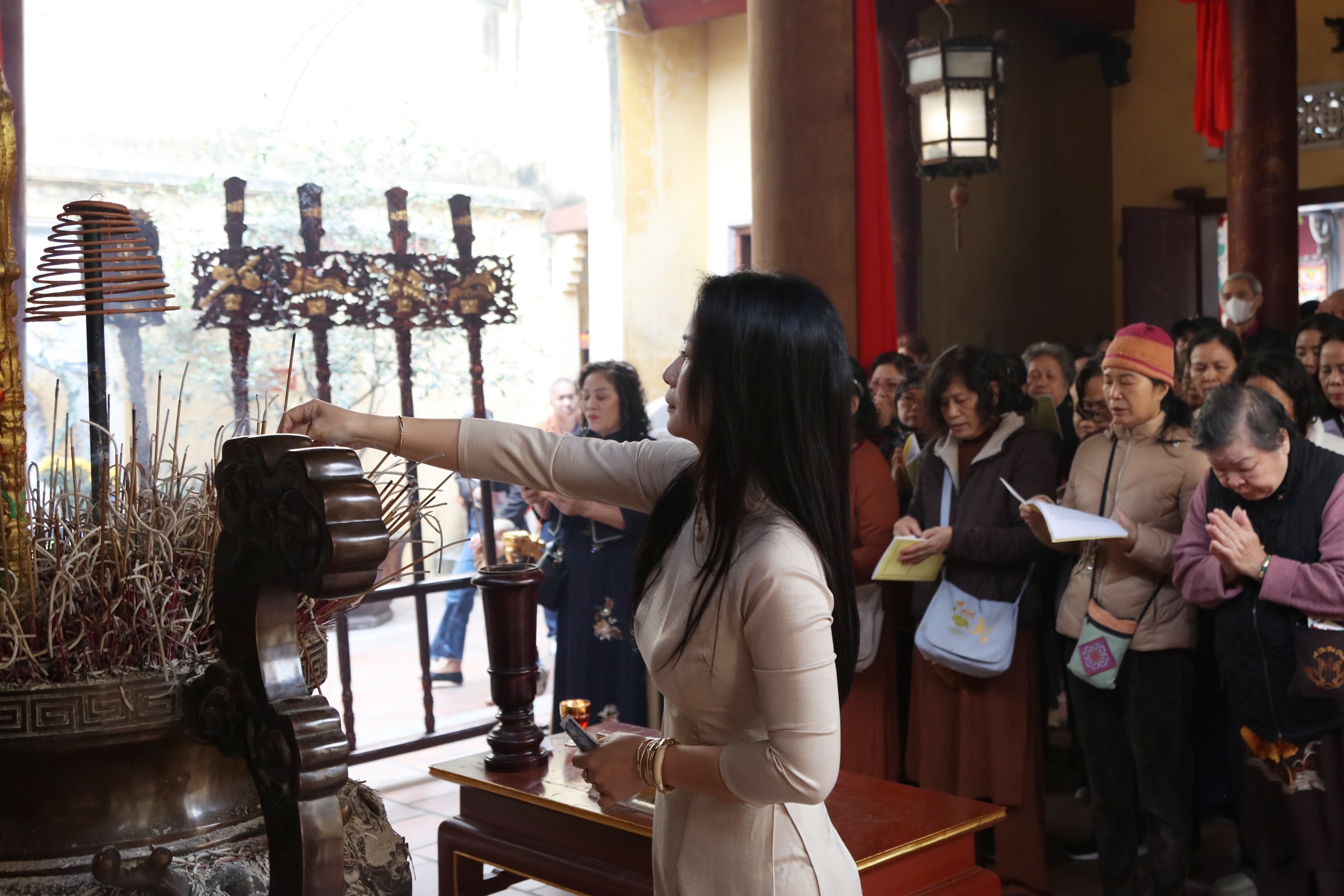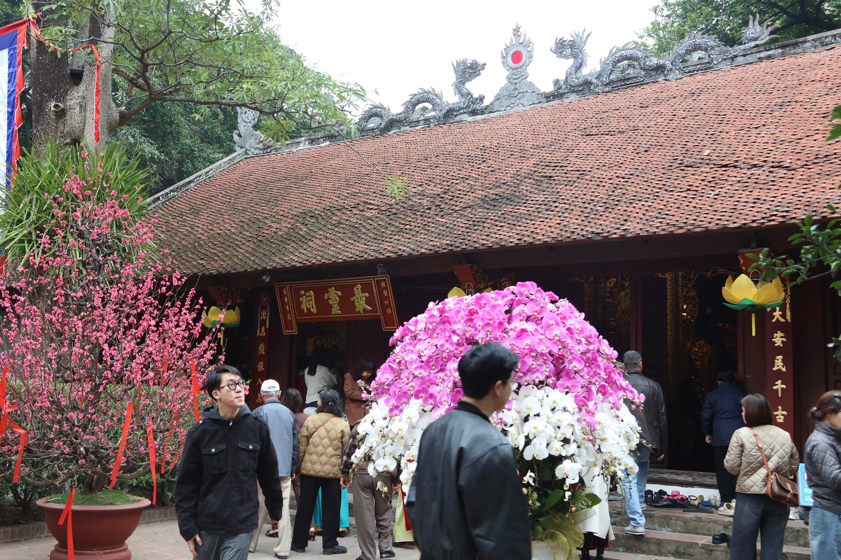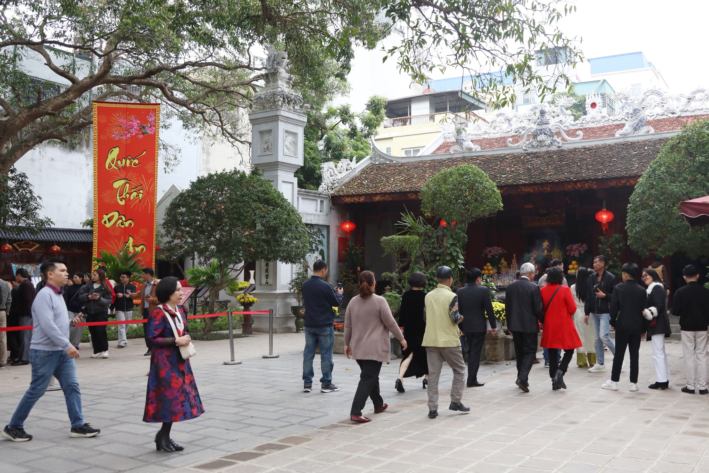 Người dân, du khách đi lễ tại đền Bạch Mã. Ảnh: Đỗ Anh