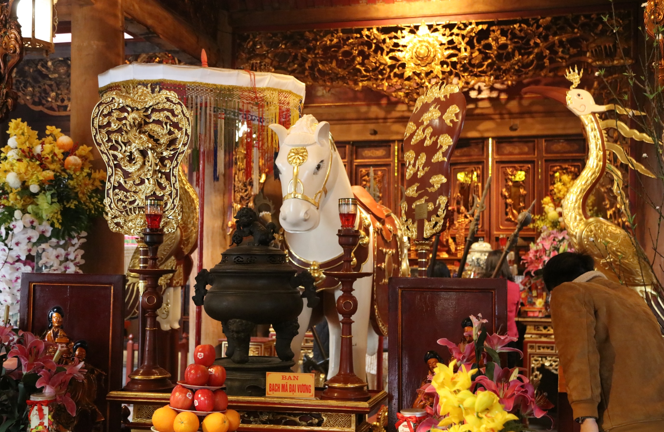 Tượng ngựa trắng thờ trong đền.