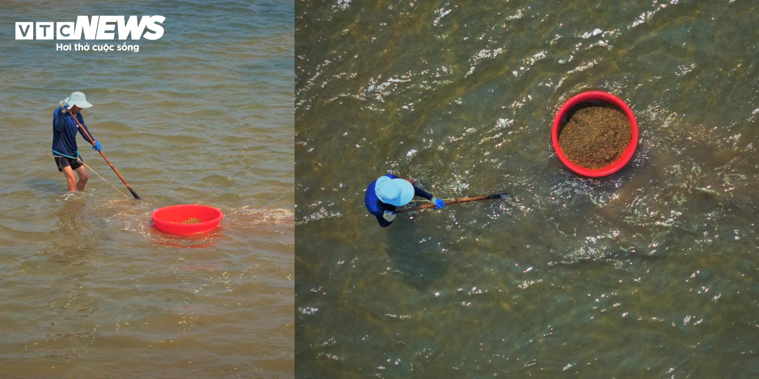 Người dân Gia Lai phơi nắng, ngâm mình giữa cửa biển cào ốc ngọc trai