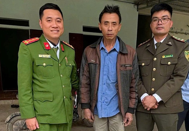 Công an và Kiểm lâm Thanh Hóa ghi nhận việc làm tự giác, trách nhiệm của anh Lê Văn Quyền ( đứng giữa)