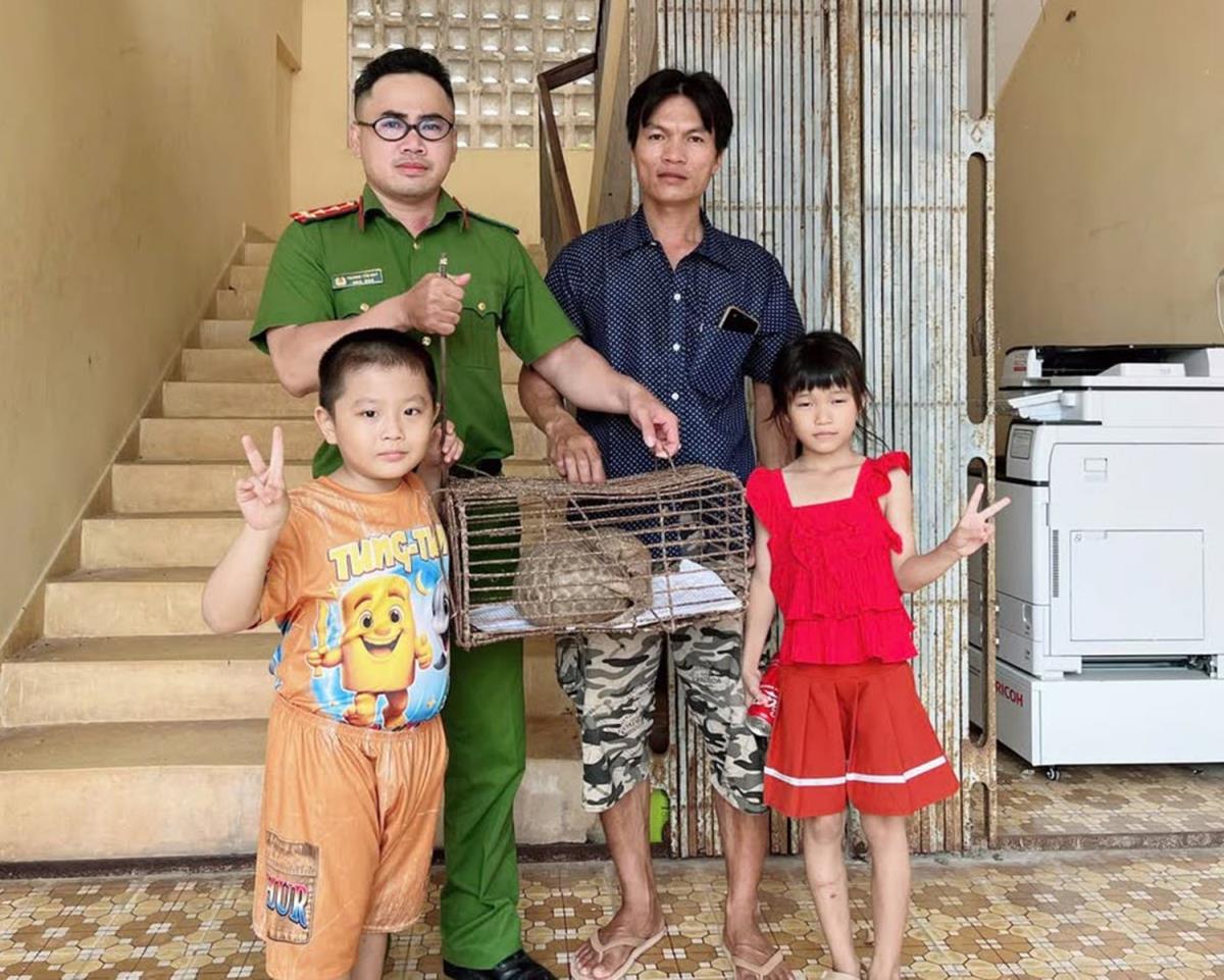 Anh Vương giao nộp 2 cá thể Tê Tê cho Công an xã Đông Sơn.