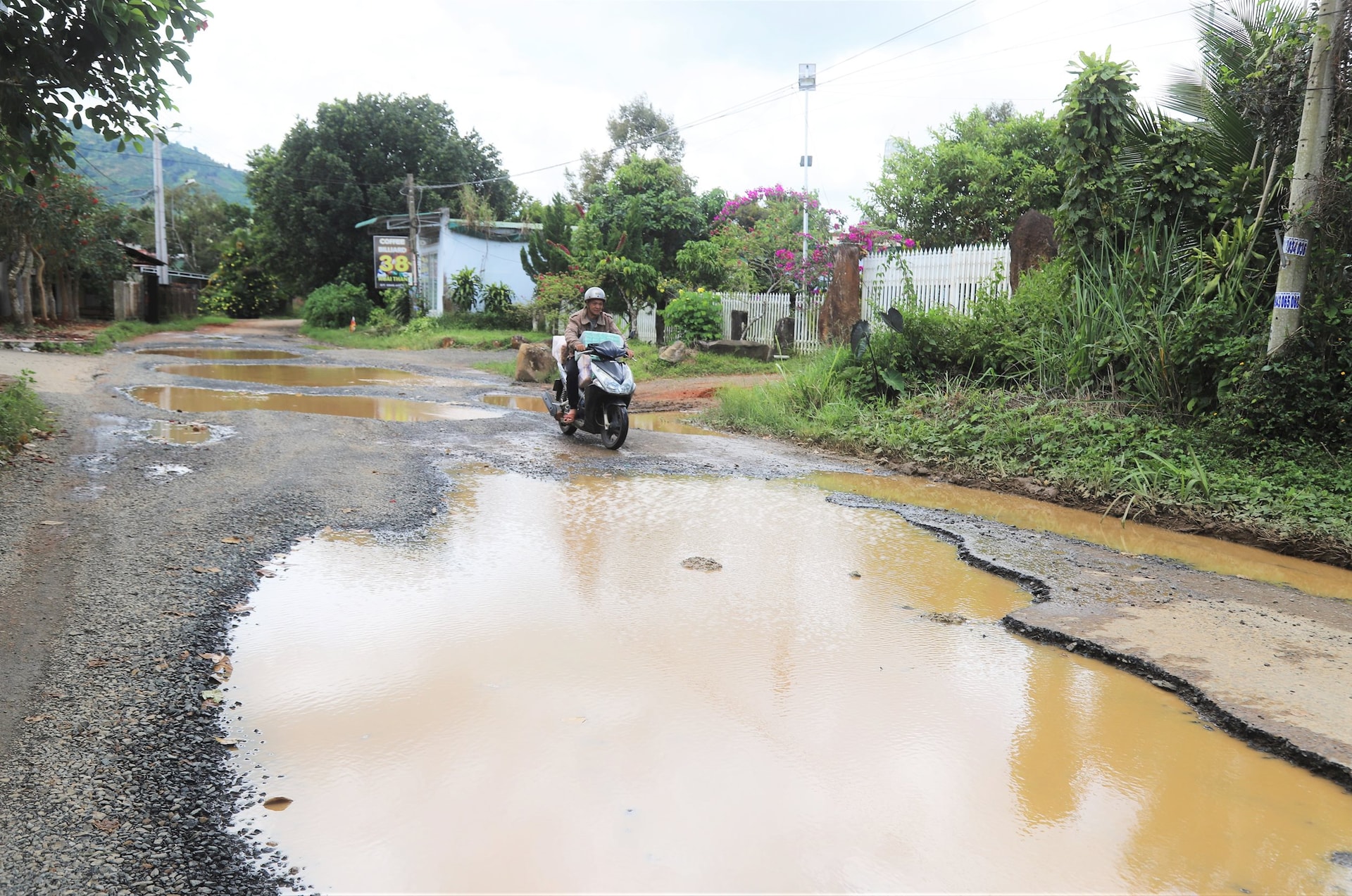 Sau nhiều năm xuống cấp, tuyến đường này đang trong tình trạng "nát như tương". Thậm chí nhiều đoạn hố sâu mọc dày đặc chẳng khác nào những “ao nước” nằm ngay lòng đường tiềm ẩn nguy cơ cao xảy ra tai nạn giao thông.
