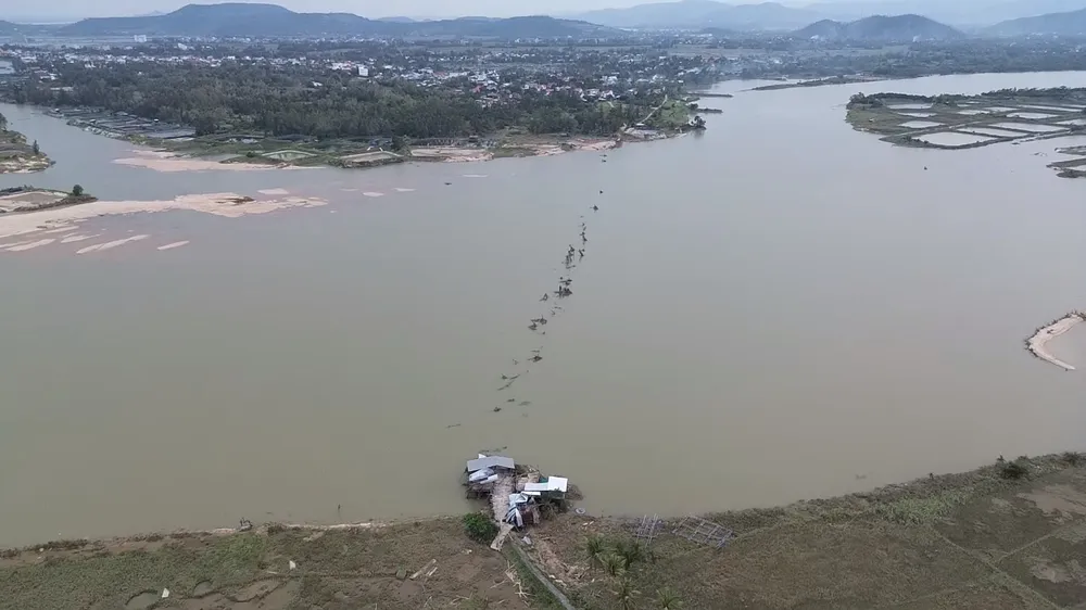 Hôm 6-11, do ảnh hưởng của bão số 13, cầu Ông Cọp bị nước lũ cuốn trôi. Hiện trên sông, chỉ còn những cọc gỗ trơ trọi.