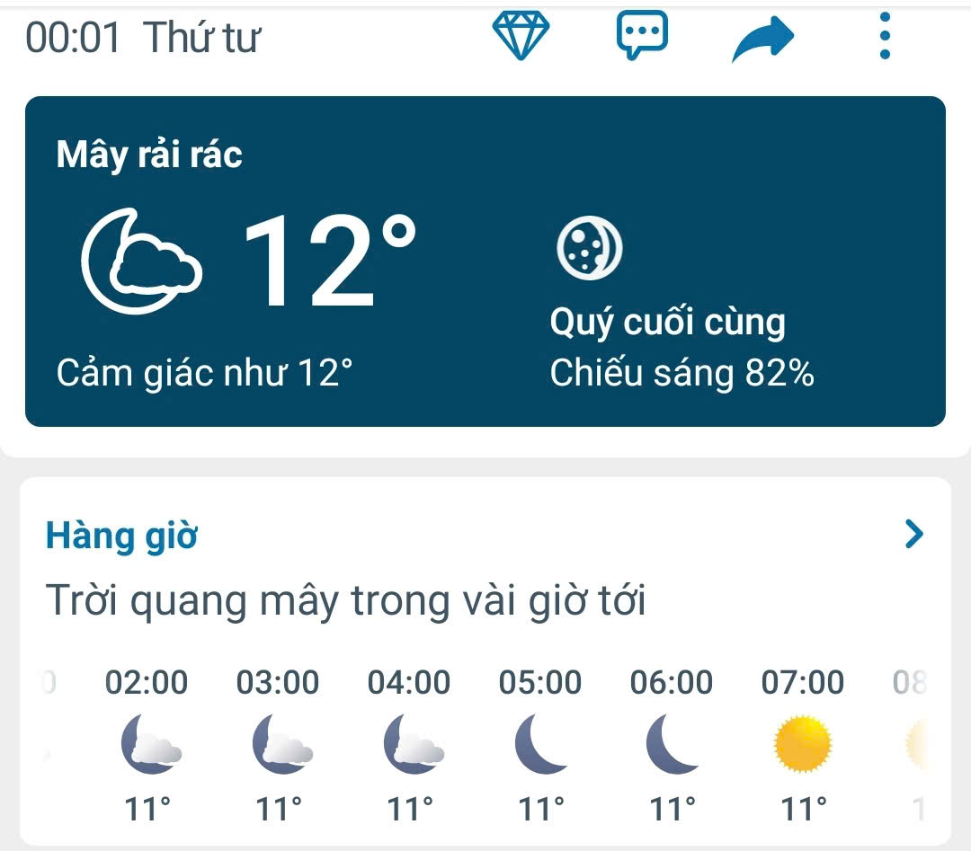Nhiệt độ lúc 0 giờ ngày 7-1, khu vực Hà Nội chỉ ở mức 12 độ C, rất lạnh.