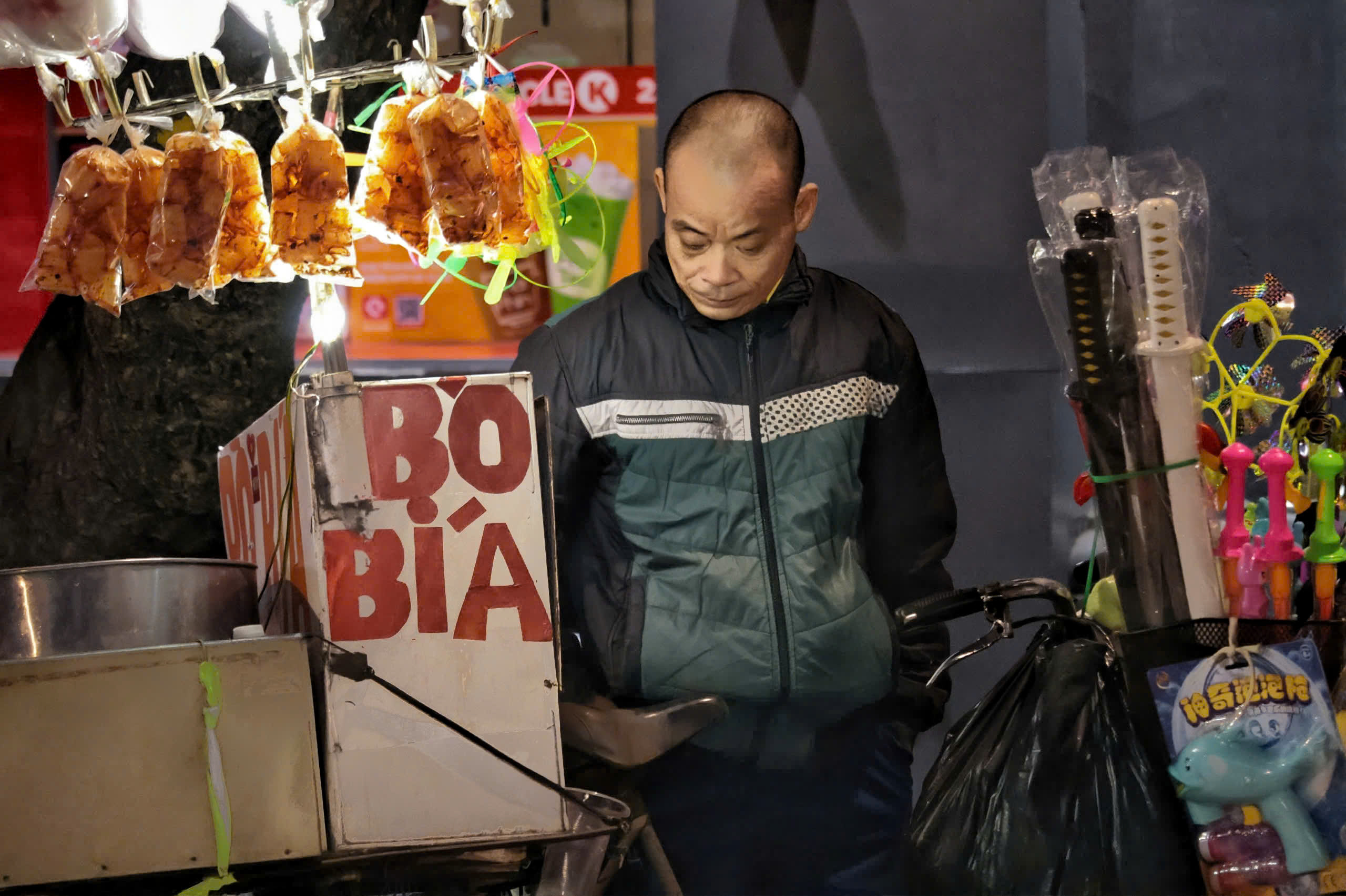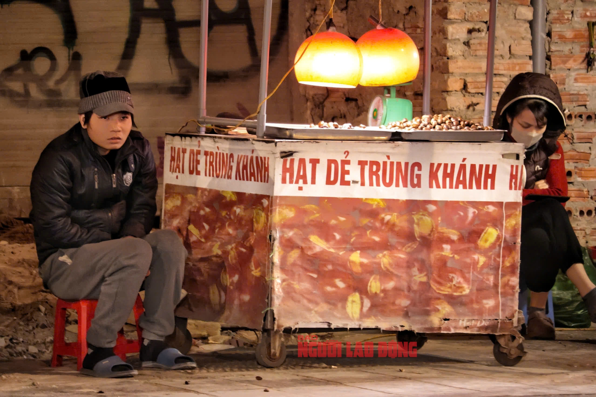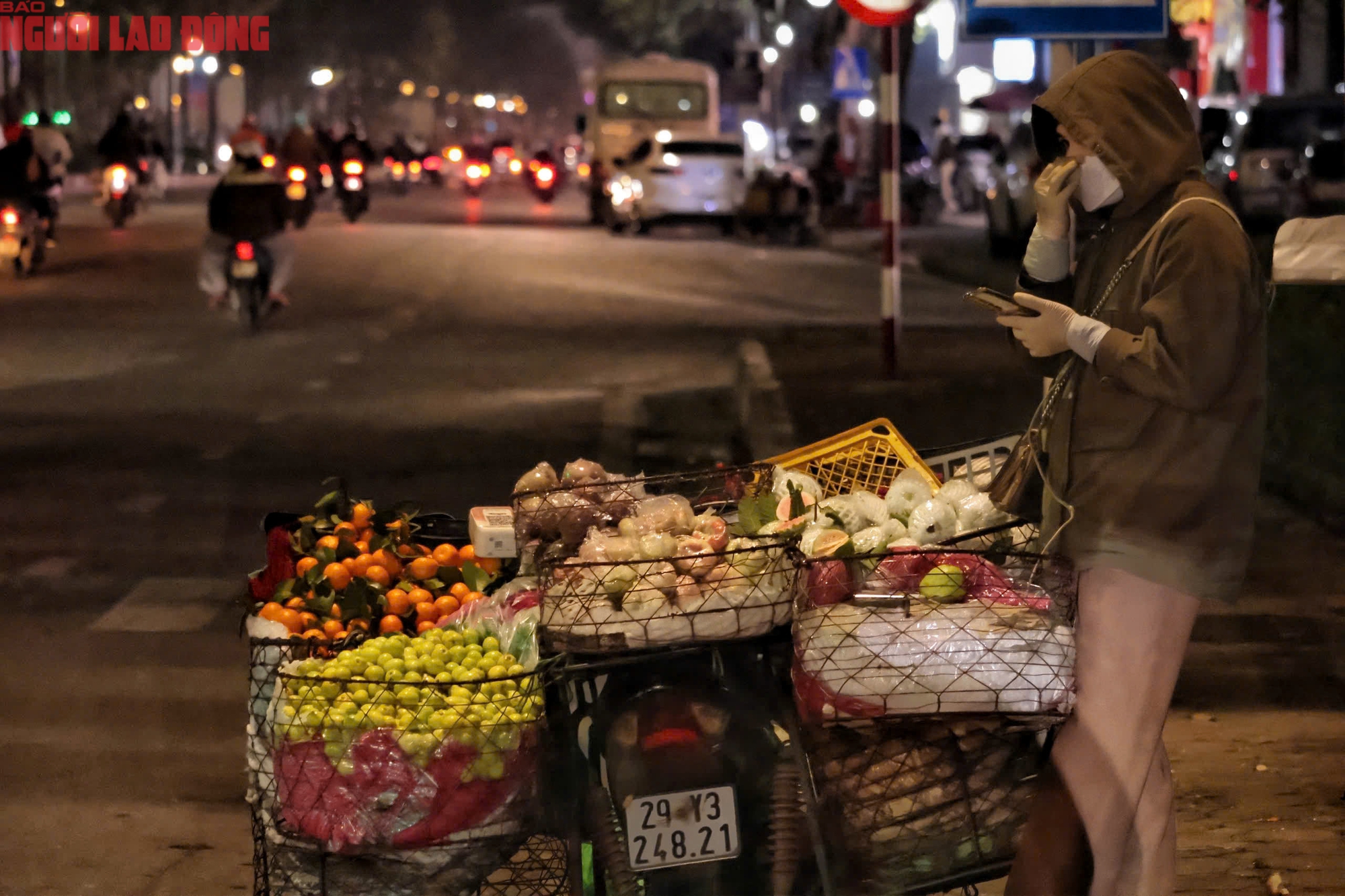 Dù càng về khuya, nhiệt độ càng xuống thấp, nhiều người lao động vẫn bán hàng mưu sinh trong giá rét. Ảnh: Hải Anh