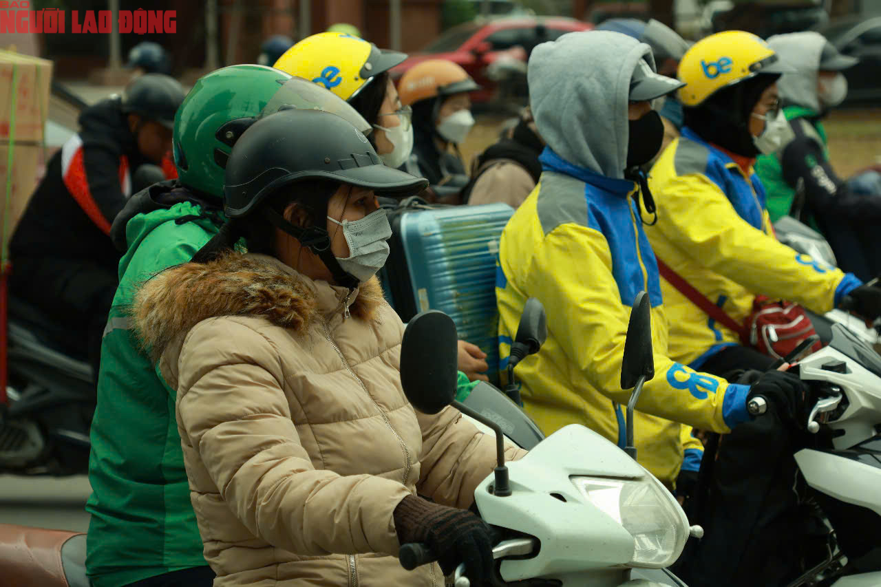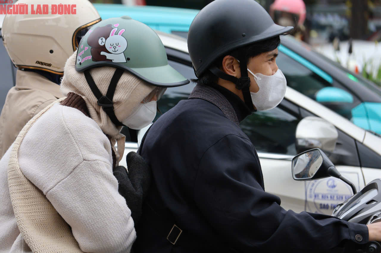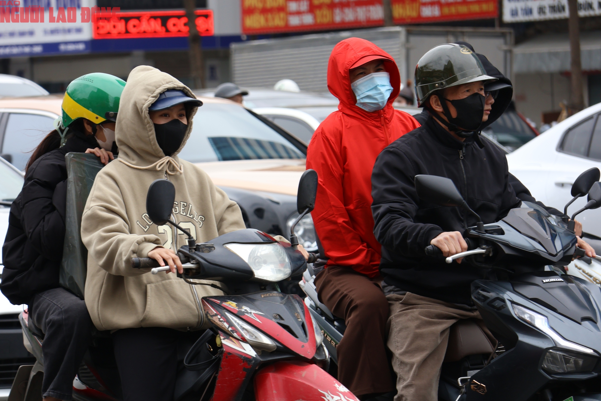 Không khí lạnh tăng cường khiến rét đậm, rét hại bao trùm khu vực Bắc Bộ và Bắc Trung Bộ. Người dân Thủ dô phải đi làm trong cái lạnh thấu xương vào sáng sớm. Ảnh: Hải Anh