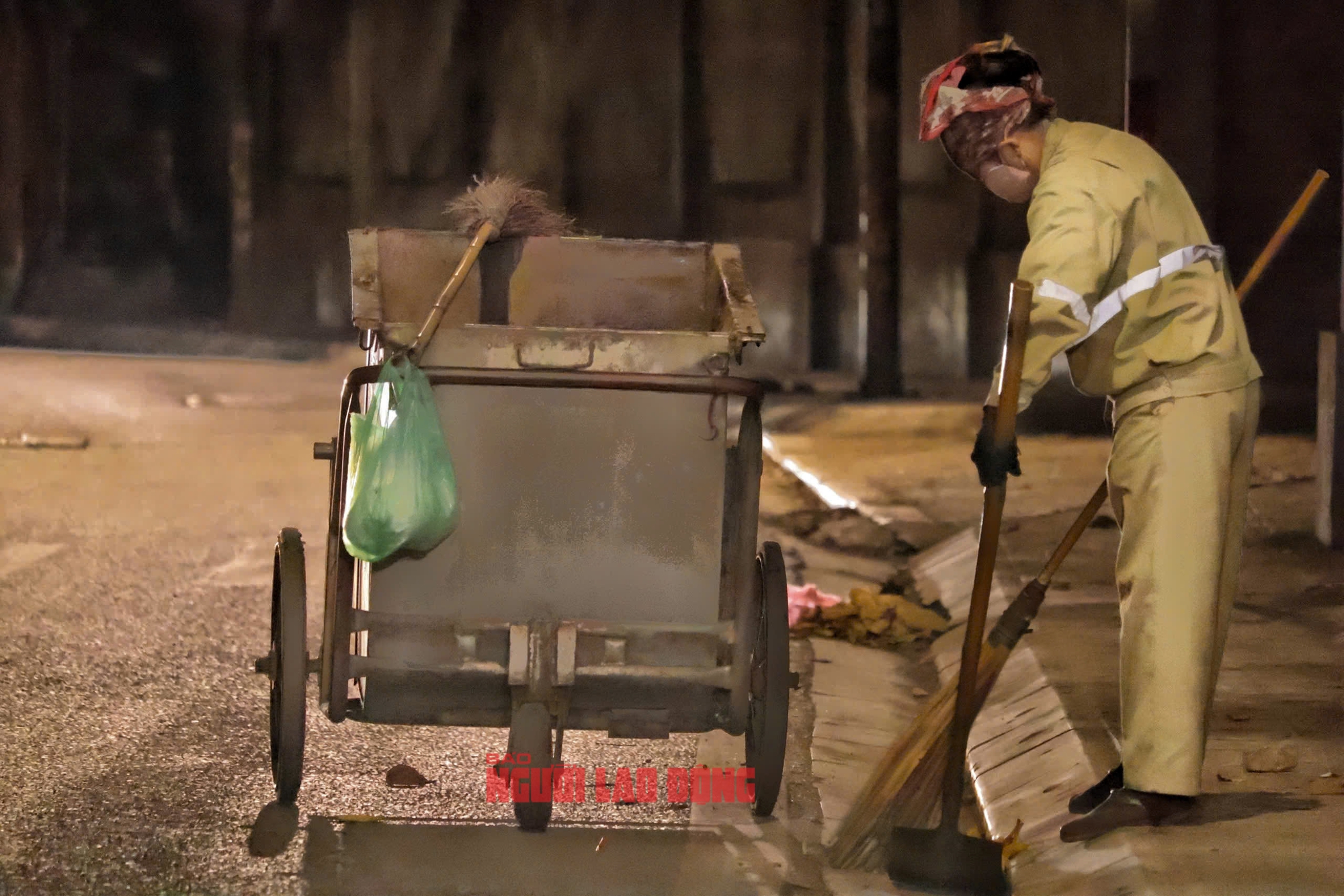 Công nhân vệ sinh môi trường làm việc trong đêm đông rét buốt. Ảnh: Hải Anh