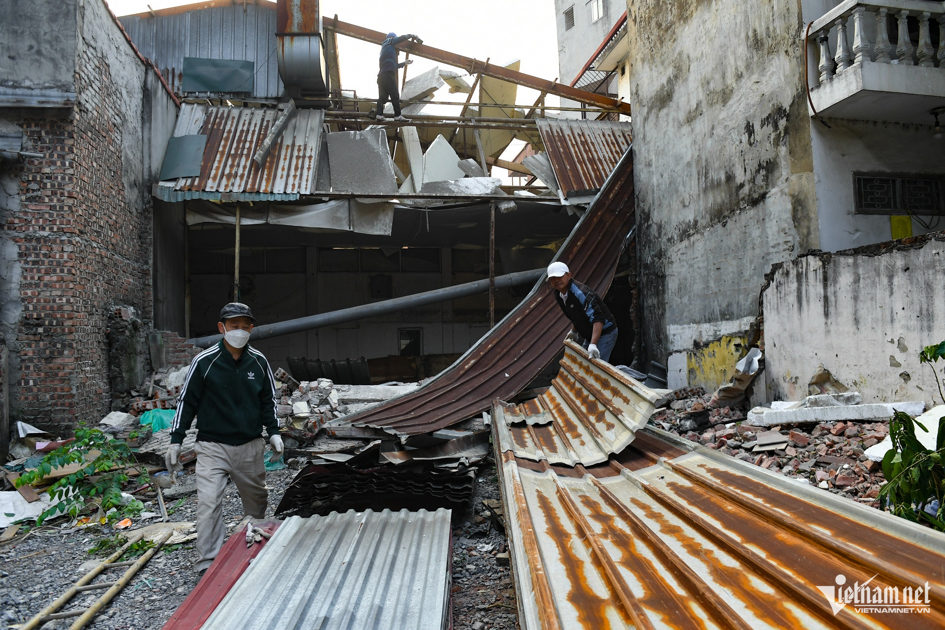 Anh Nguyễn Tú, công nhân tháo dỡ, cho biết đã làm việc liên tục tại khu vực bàn giao mặt bằng đường vành đai 2,5 đoạn Cầu Giấy suốt cả tháng qua. "Với tốc độ này, tôi nghĩ mặt bằng khu vực sẽ sớm được giải phóng", anh nói.