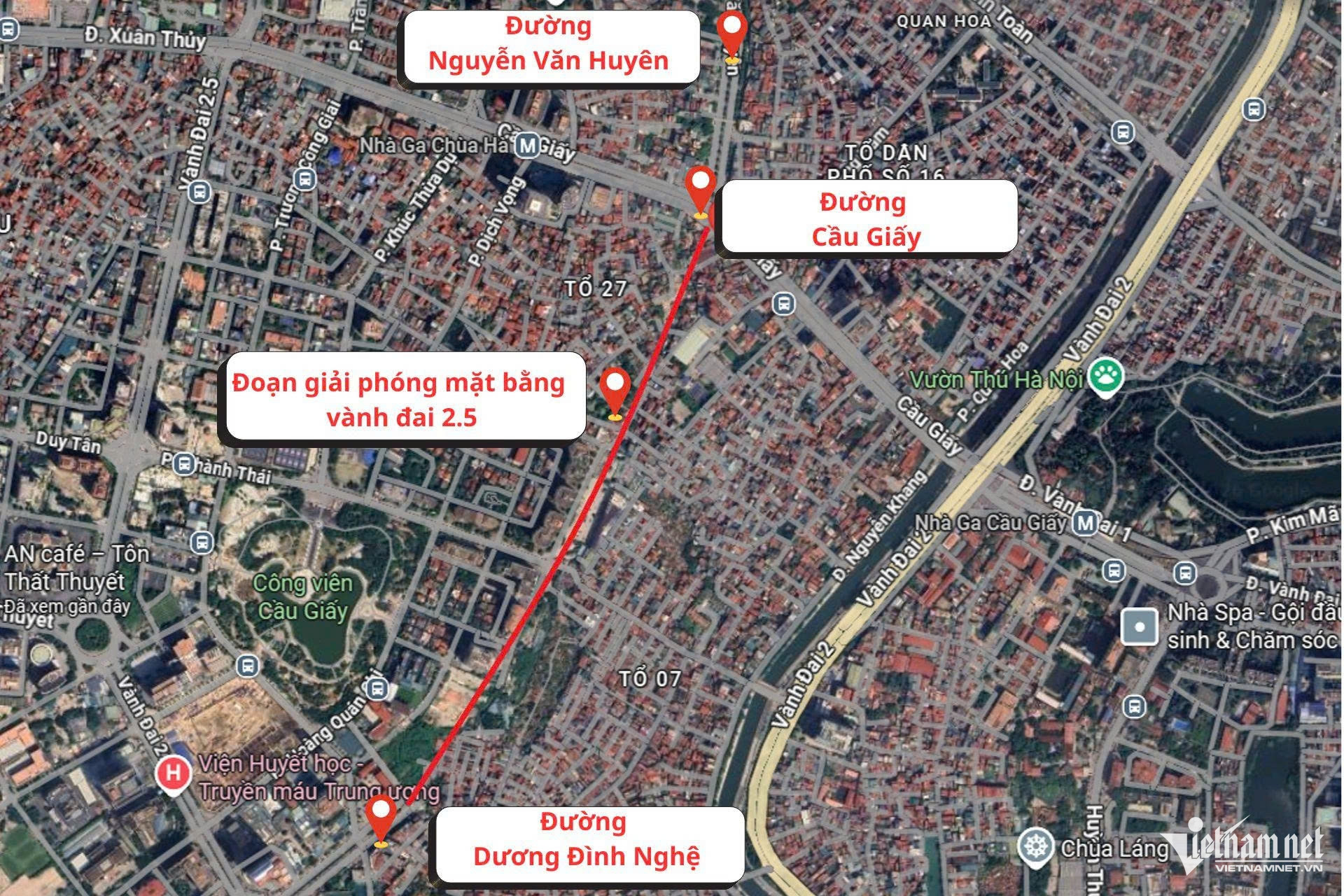 Dự án tuyến đường nối từ đường Cầu Giấy đến Khu đô thị mới Dịch Vọng (thuộc Vành đai 2,5) có chiều dài khoảng 420m đã triển khai nhiều năm nhưng chưa thể hoàn thiện do vướng mắc về giải phóng mặt bằng.