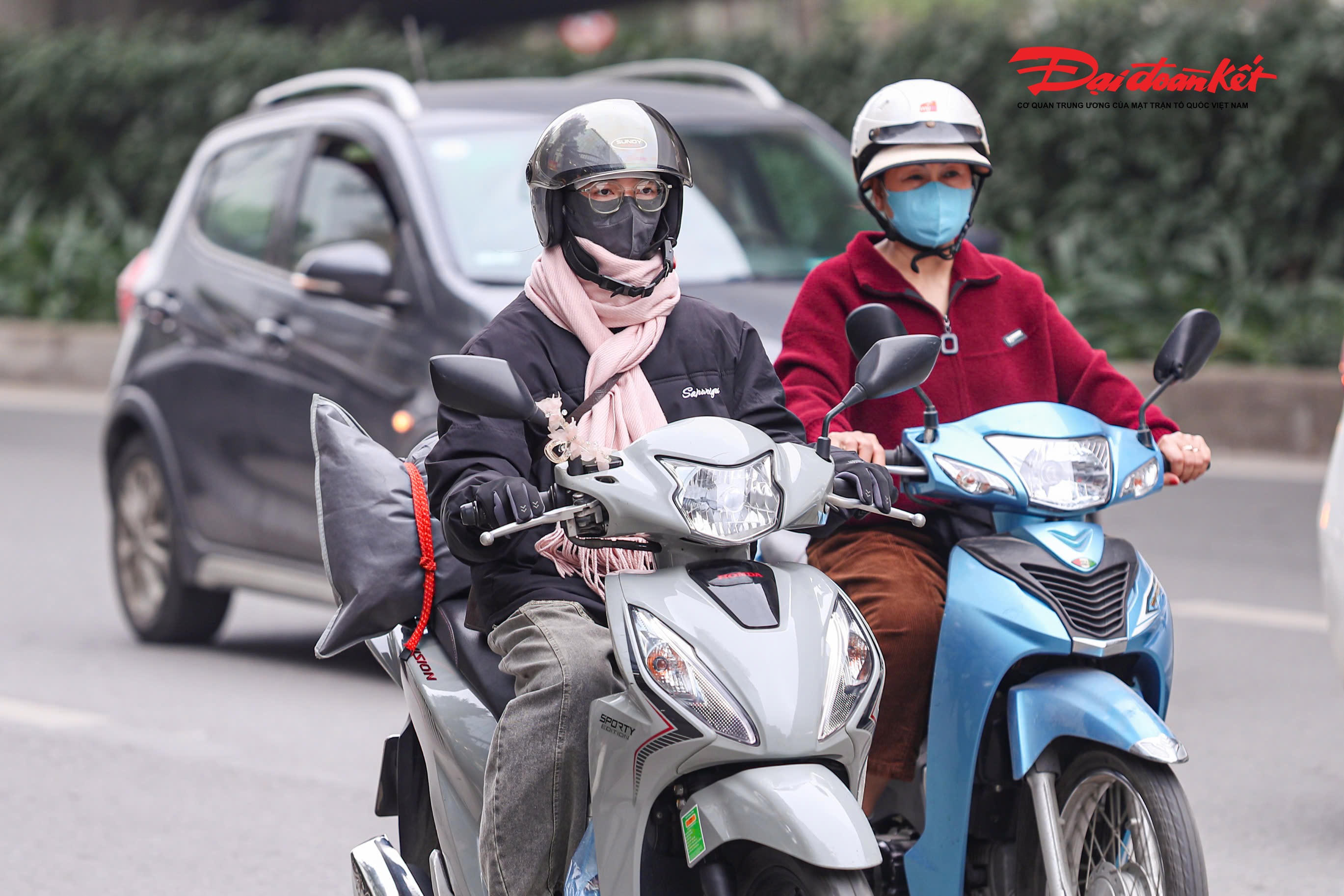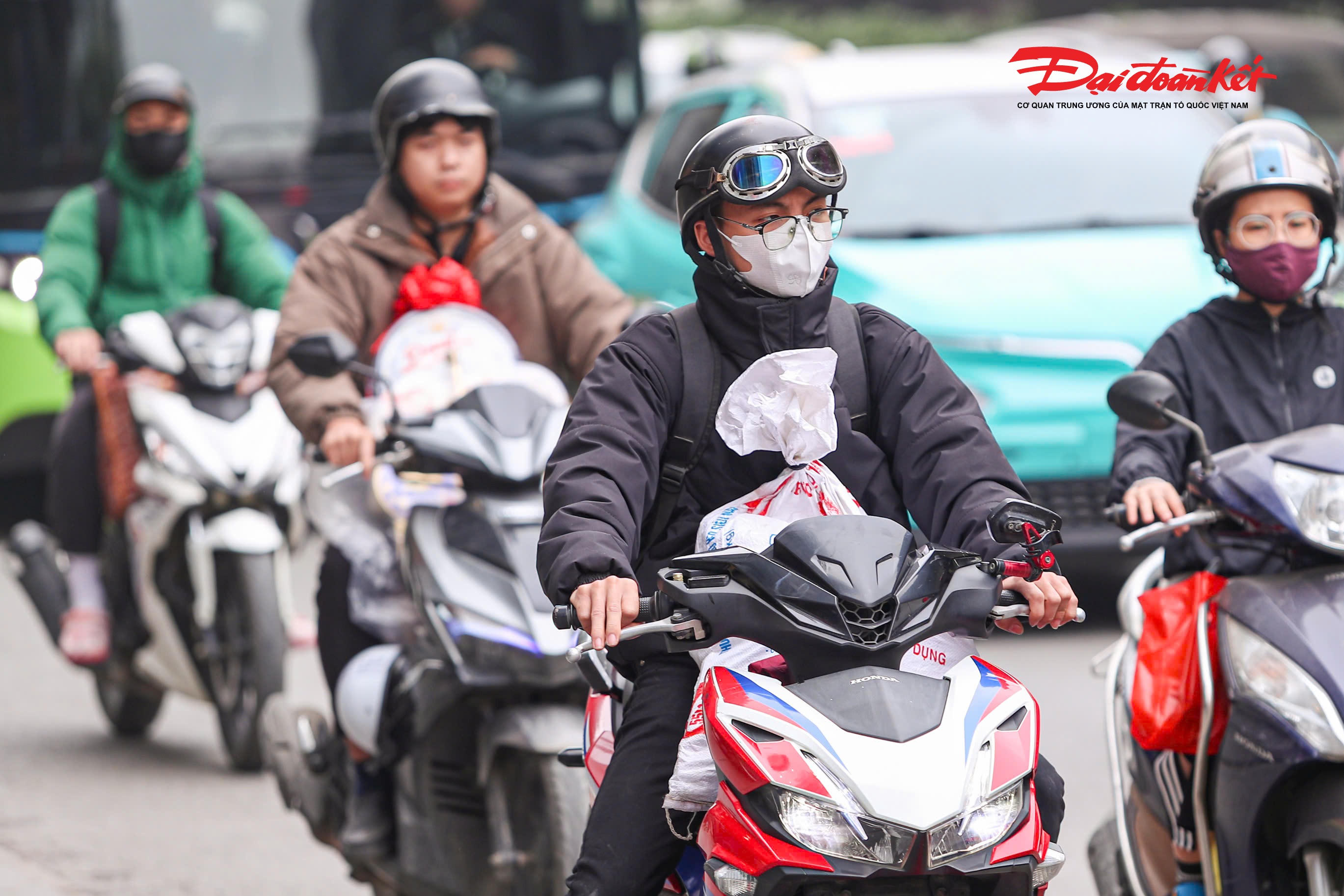 Người dân lỉnh kỉnh đồ đạc, di chuyển bằng xe máy hối hả rời Thủ đô về quê đón Tết.