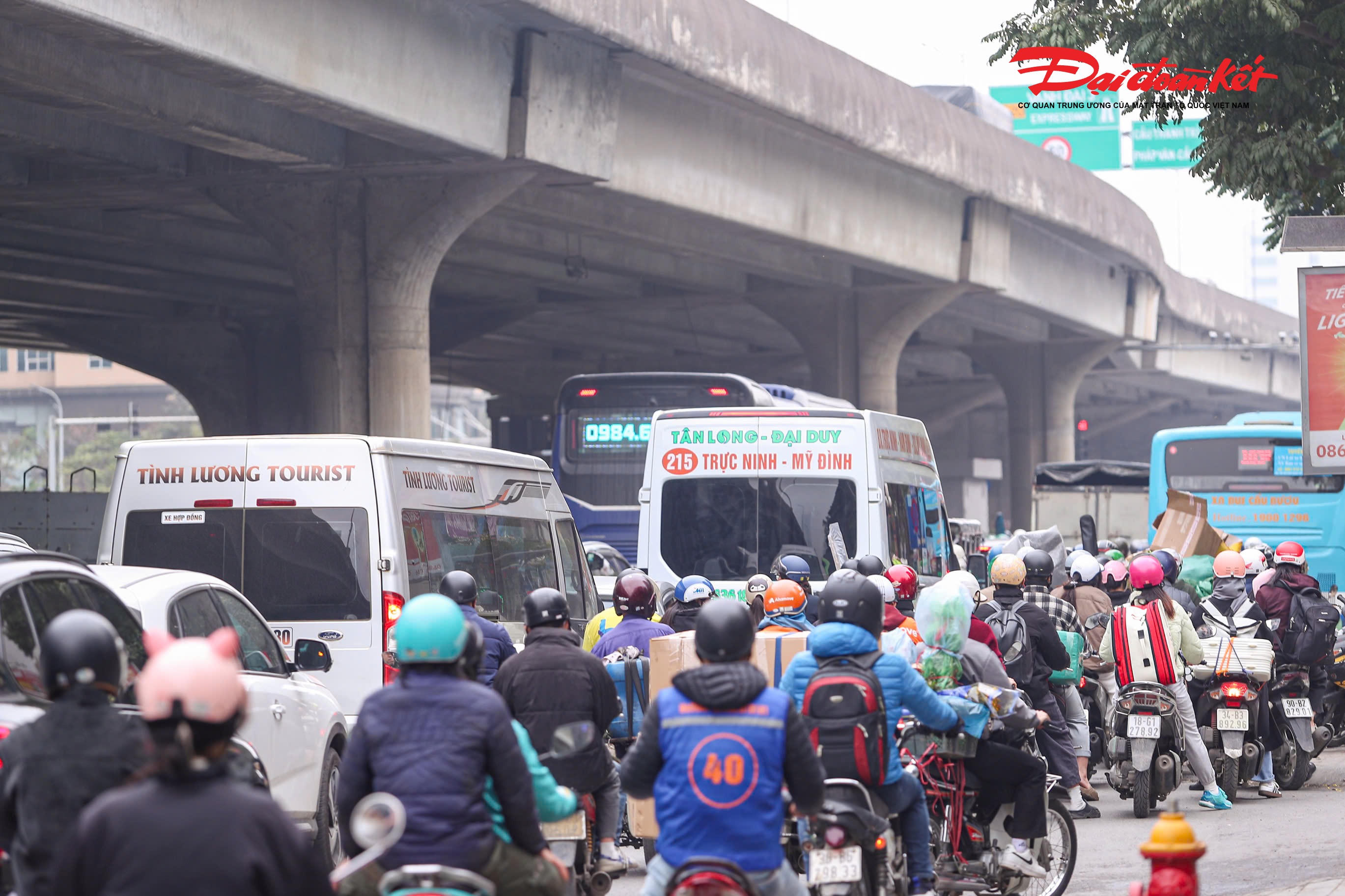 Không chỉ tại các bến xe, nhiều tuyến đường như Cầu Giấy, Phạm Hùng, Trần Duy Hưng, Nguyễn Chí Thanh, Nguyễn Trãi, Trường Chinh, Vành đai 3 và các nút giao trọng điểm như Ngã Tư Sở cũng rơi vào tình trạng ùn ứ kéo dài khi người dân chở theo lỉnh kỉnh hành lý hối hả về quê đón Tết.
