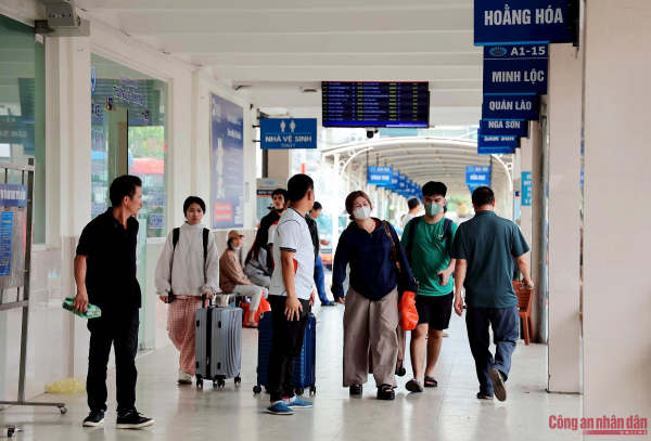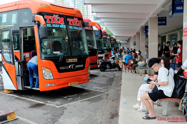Hành khách lỉnh kỉnh hành lý, hối hả lên xe rời Thủ đô nghỉ lễ.