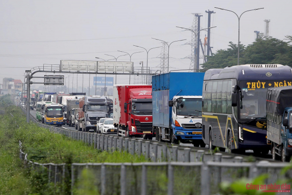 Đến gần 17h cùng ngày, lưu lượng phương tiện từ cao tốc Pháp Vân - Cầu Giẽ vào trung tâm thành phố Hà Nội và lên Vành đai 3 trên cao cũng tăng đột biến. Tại điểm cuối cao tốc, ô tô xếp hàng khoảng 3km.