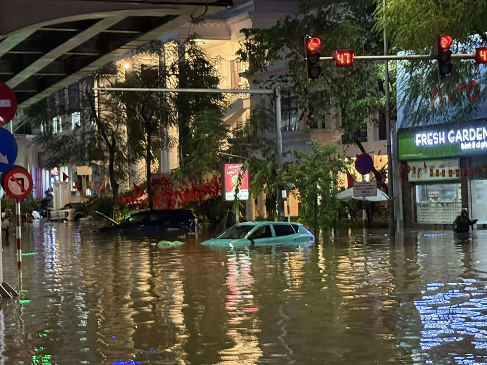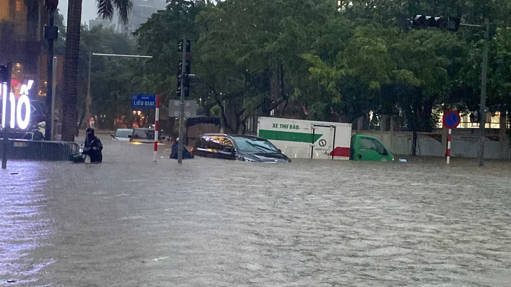 21 giờ 15 phút, một số tuyến đường ở Hà Nội như Dương Đình Nghệ, Phạm Hùng, Ngã tư Cầu Giấy - Phạm Văn Đồng... nước đã rút bớt tuy nhiên đường vẫn ngập... Thậm chí, ở Ngã tư Kim Mã - Đào Tấn (trước Lotte Center Đào Tấn) vẫn đang là biển nước mênh mông nên nhiều phương tiện di chuyển để đây phải quay đầu đi hướng khác.