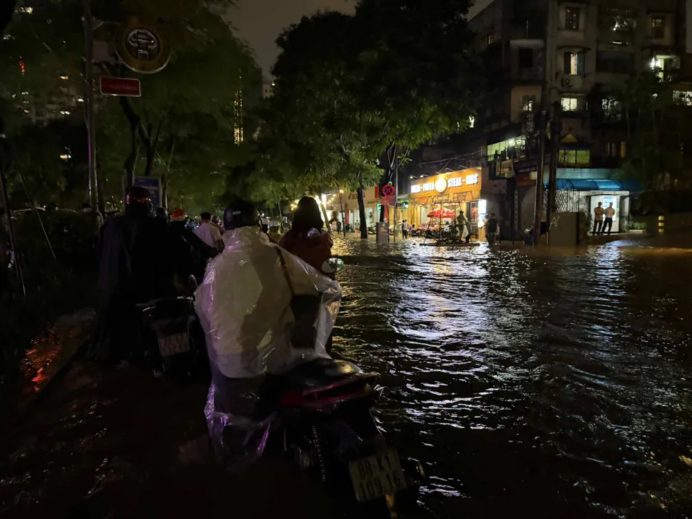 Người dân Hà Nội trải qua một đêm đáng nhớ với trận mưa ngập lịch sử. Ảnh: AN HIỀN