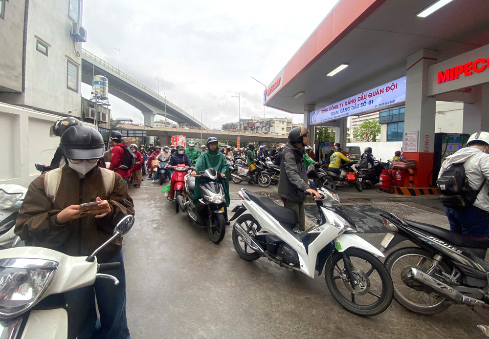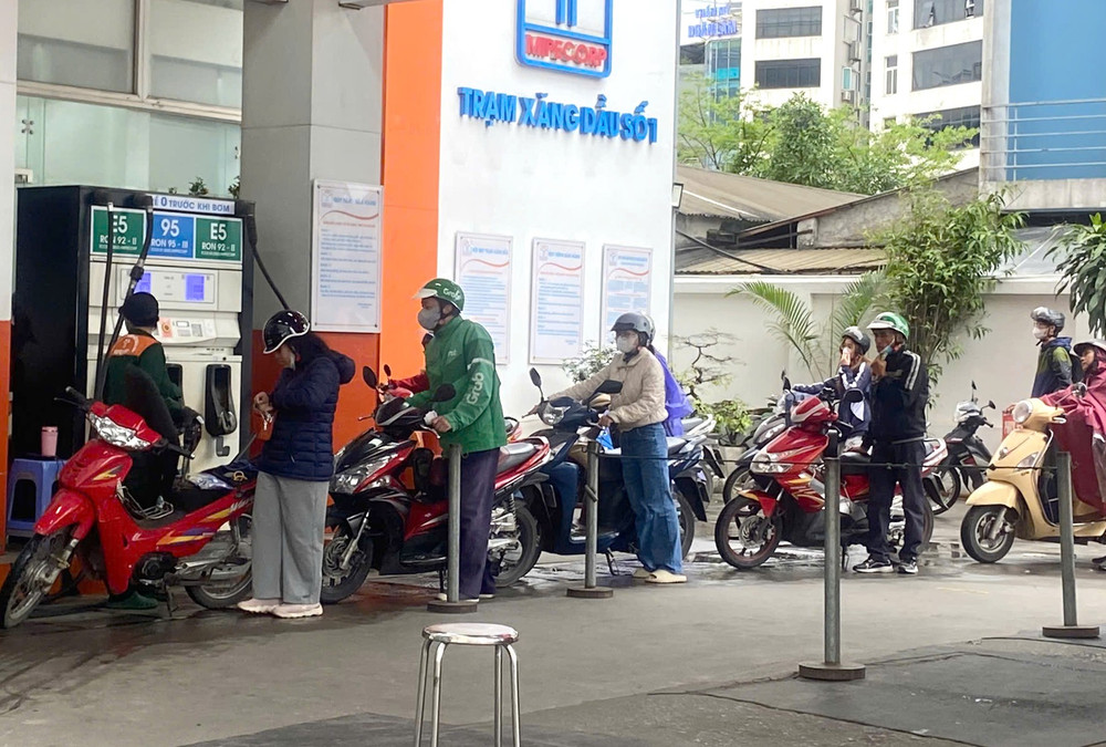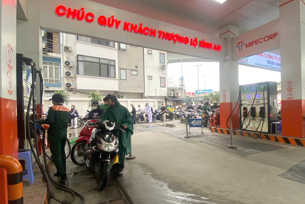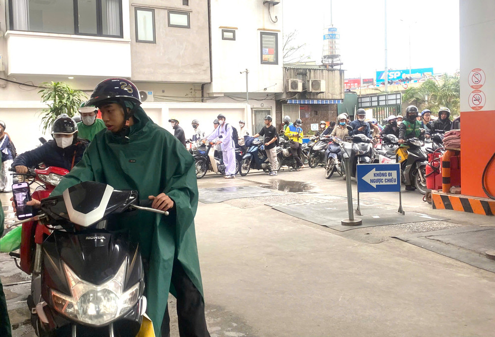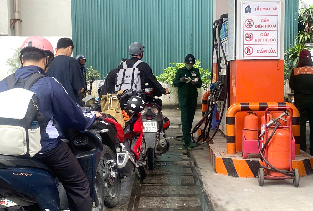Không khí tại cây xăng trở nên nhộn nhịp khi nhiều người cùng lúc ghé đổ nhiên liệu