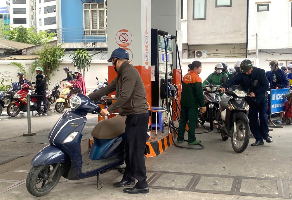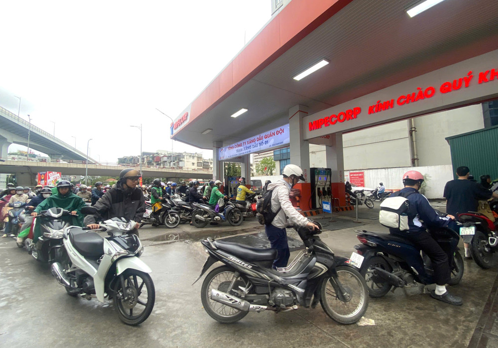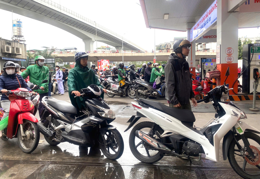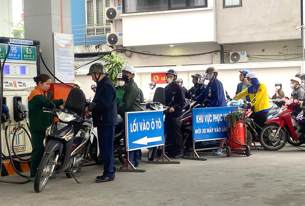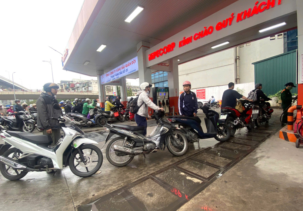 Không khí tại cây xăng trở nên nhộn nhịp khi nhiều người cùng lúc ghé đổ nhiên liệu