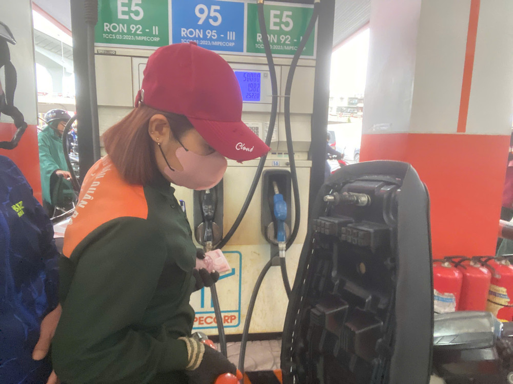Tại khu vực trụ bơm, nhân viên cửa hàng làm việc liên tục để phục vụ khách hàng