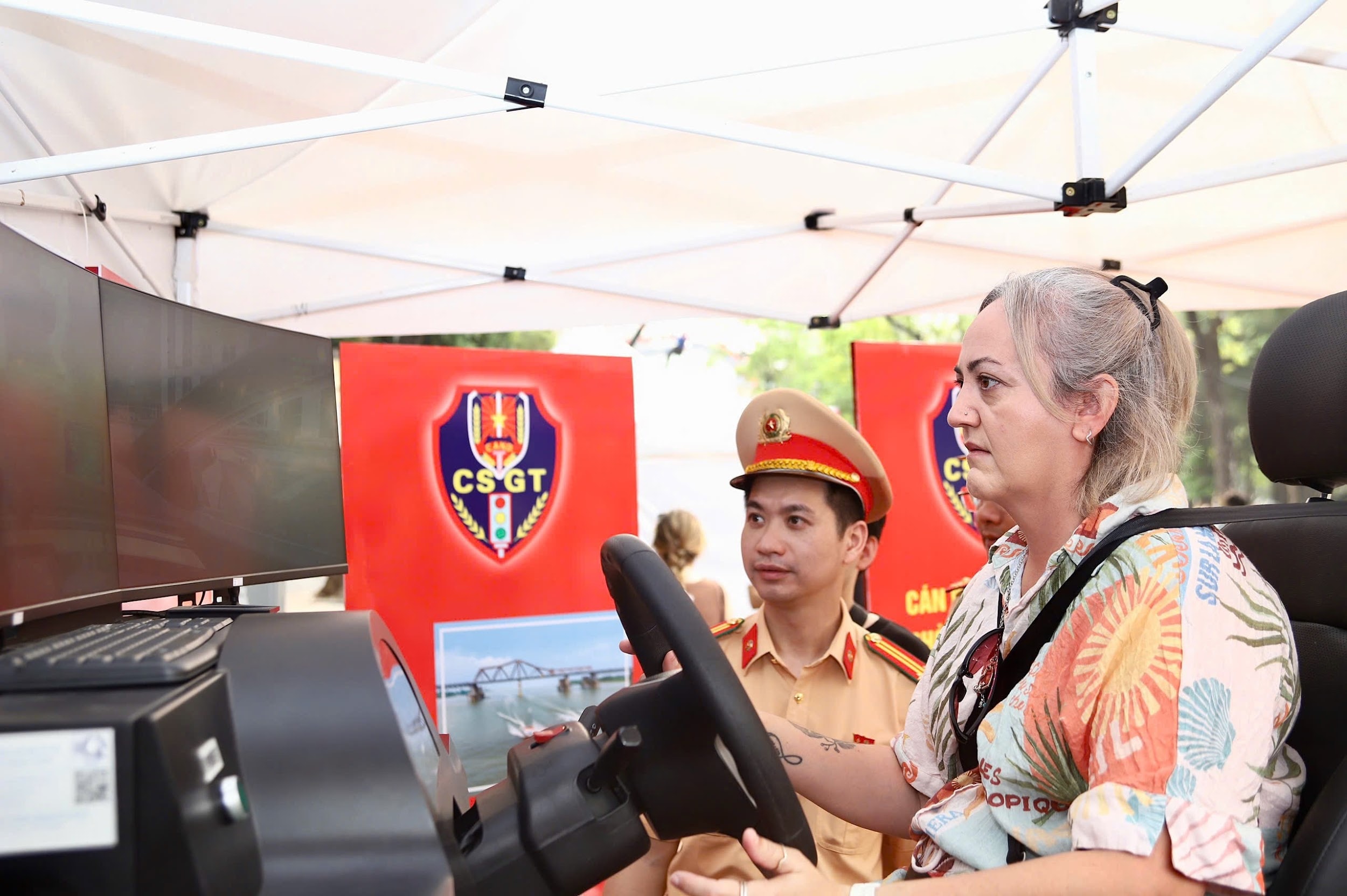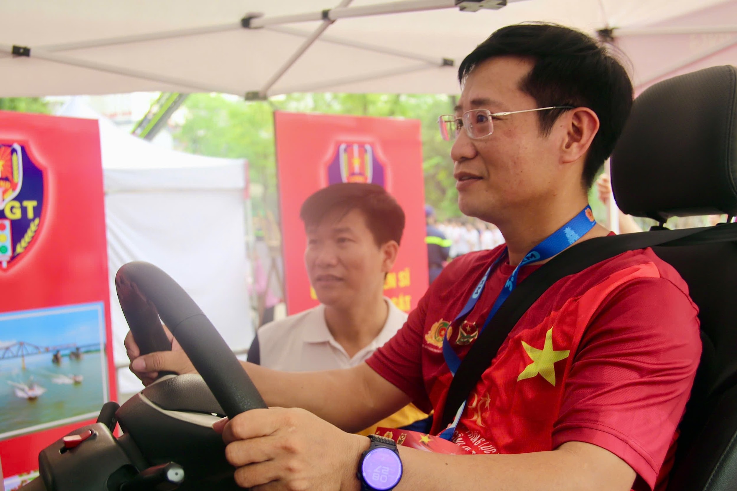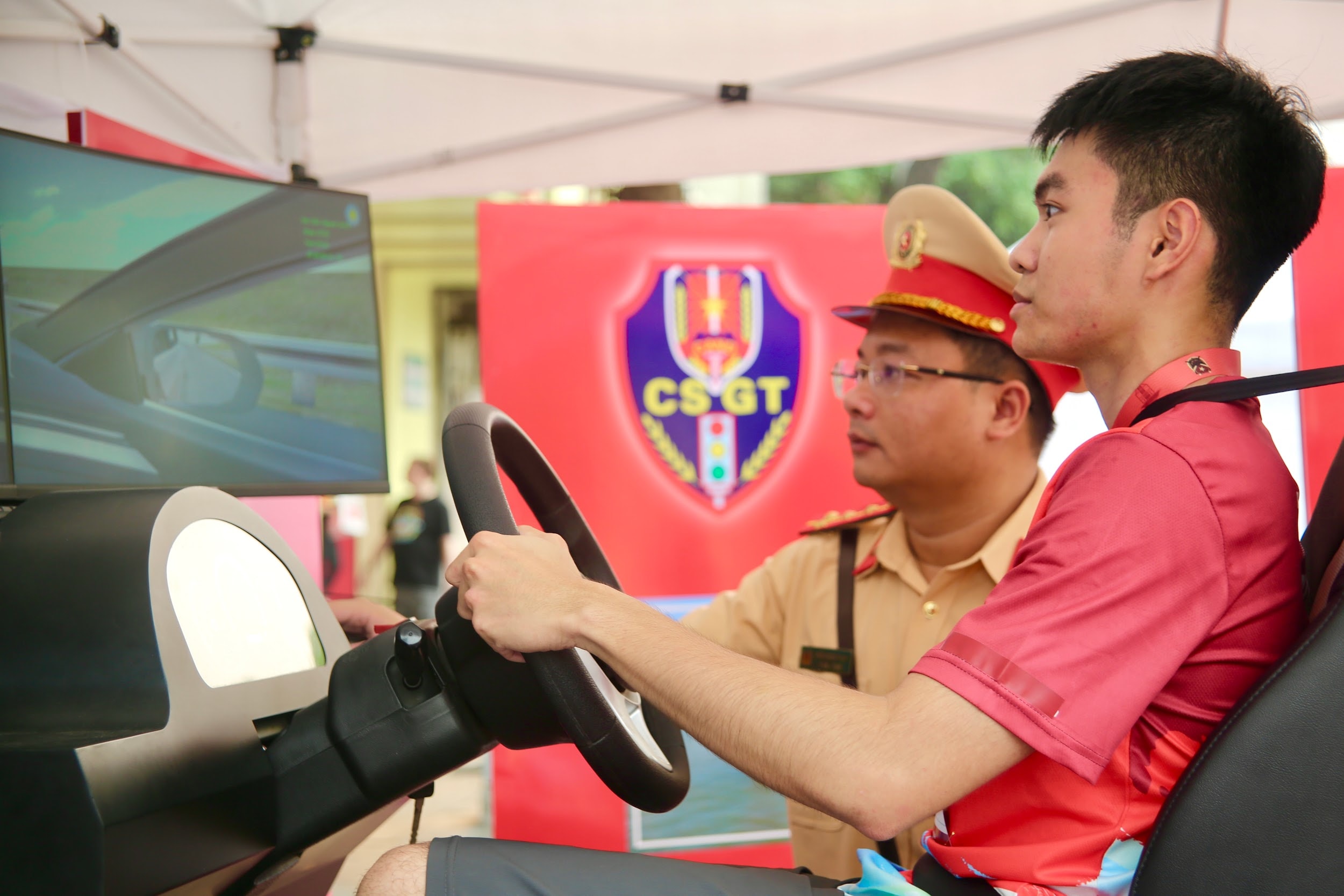 Đặc biệt, khu vực mô phỏng sát hạch giấy phép lái xe ô tô được bố trí tại không gian trưng bày đã mang đến trải nghiệm thực tế, sinh động cho khách tham quan.