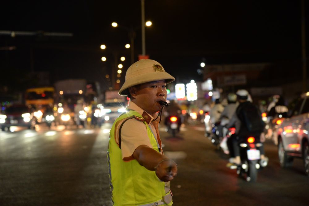 Lực lượng Cảnh sát giao thông điều tiết tại các điểm giao nhau đến tận 0 giờ ngày 27 tết.