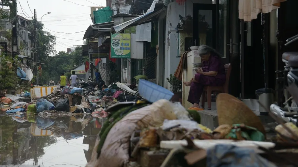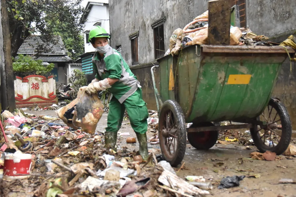 Cùng quan điểm, theo bà Ngô Thị Hoa (73 tuổi), đợt lũ qua đã đem về một lượng rác, bùn đất kinh khủng. Nước lũ khiến rác nổi bồng bềnh, trôi vào sân nhà tạo thành một khung cảnh nhếch nhác.