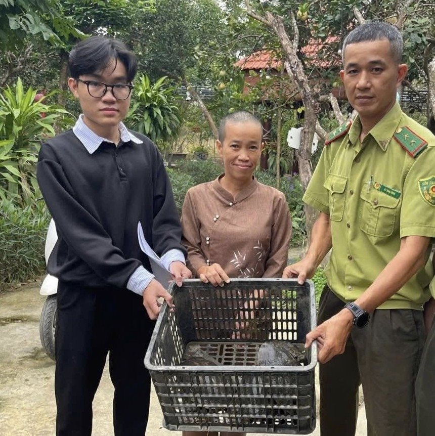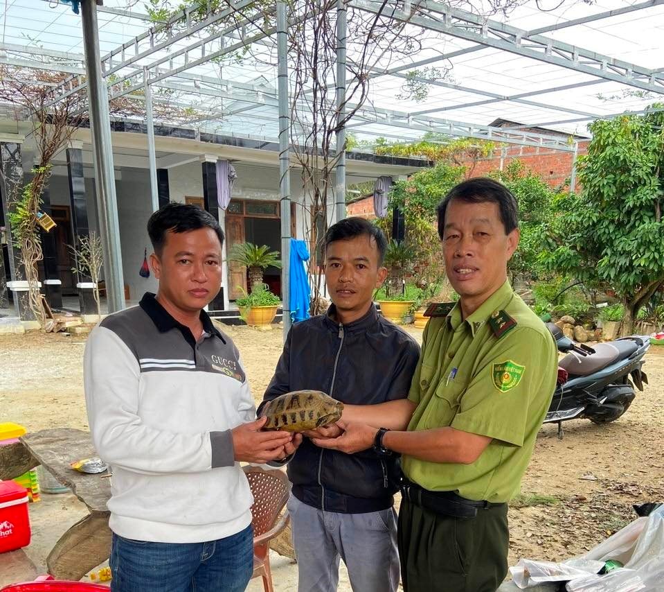 Cụ thể, anh Mai Đức Phương, trú tại tổ dân phố Đình Môn (phường Hương Thọ cũ), đã tự nguyện giao nộp một cá thể rùa núi vàng, nặng khoảng 1,0 kg.