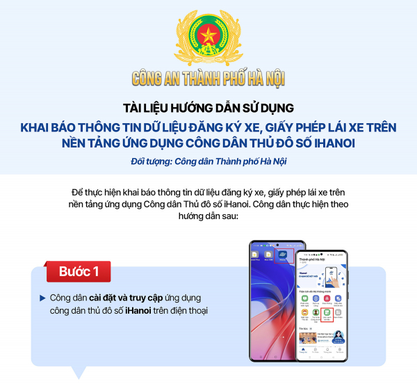 Để giúp người dân khai báo một cách thuận tiện và chính xác, Công an TP Hà Nội vừa ban hành hướng dẫn khai báo thông tin dữ liệu đăng ký xe, giấy phép lái xe trên nền tảng ứng dụng "Công dân Thủ đô số - iHanoi".