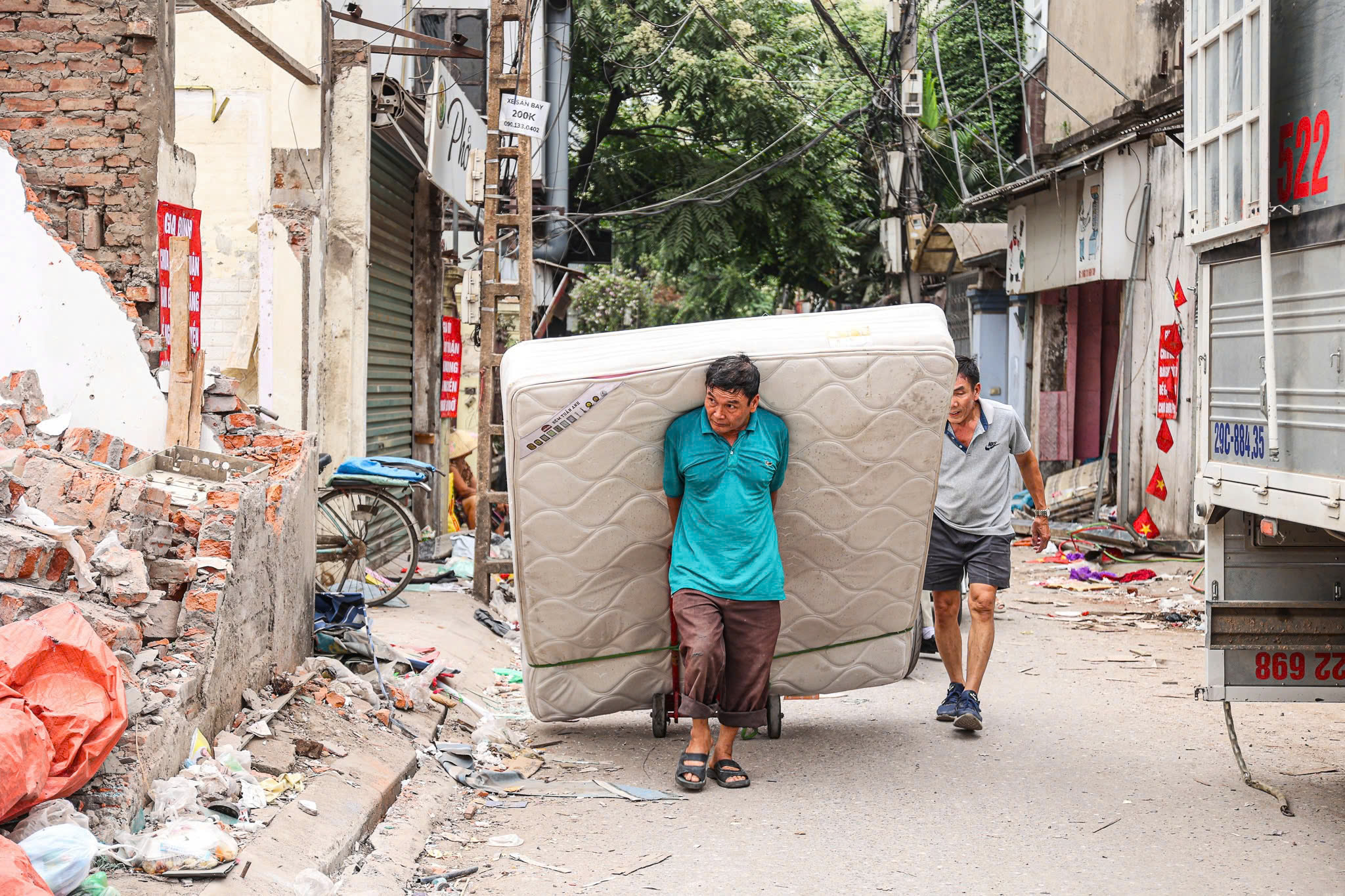 Nhiều gia đình đang chủ động tháo dỡ nhà cửa, đồ đạc để bàn giao mặt bằng. Ảnh: TIẾN CƯỜNG