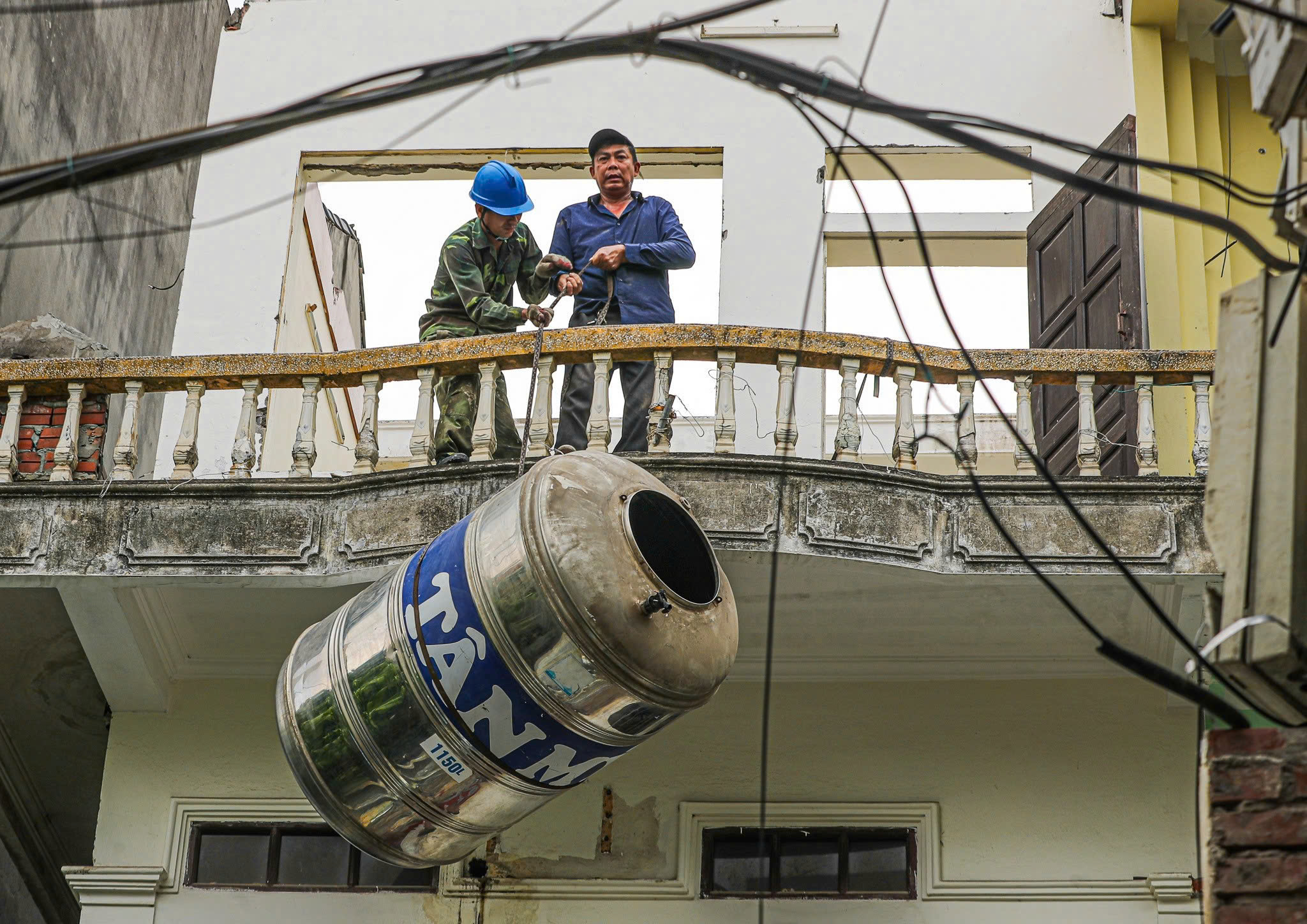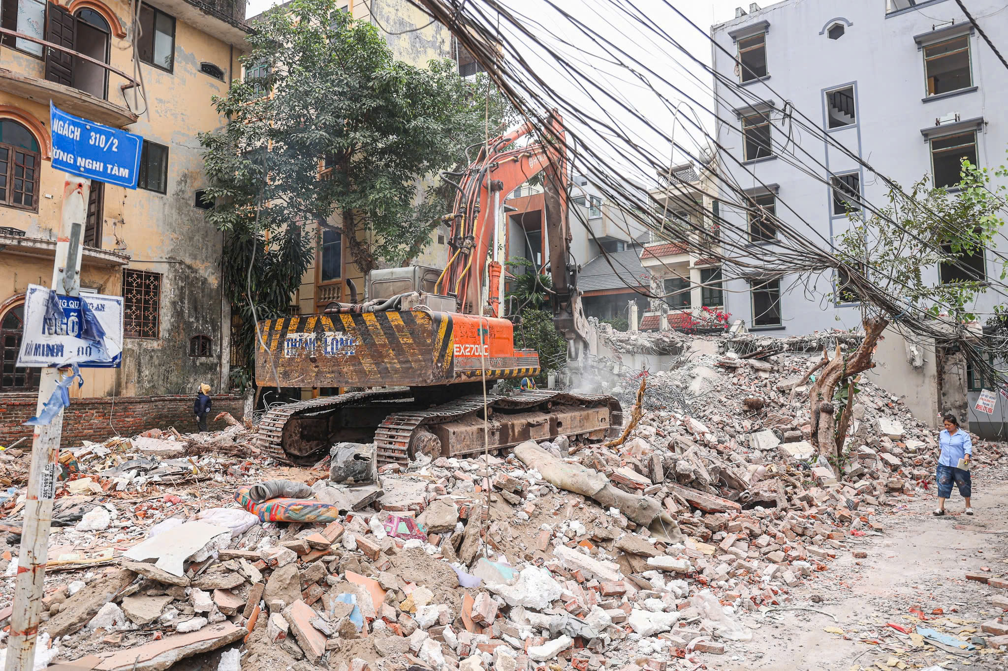 Công tác giải phóng mặt bằng tại ngõ 310 Nghi Tàm đang diễn ra khẩn trương để làm cầu Tứ Liên. Ảnh: TIẾN CƯỜNG