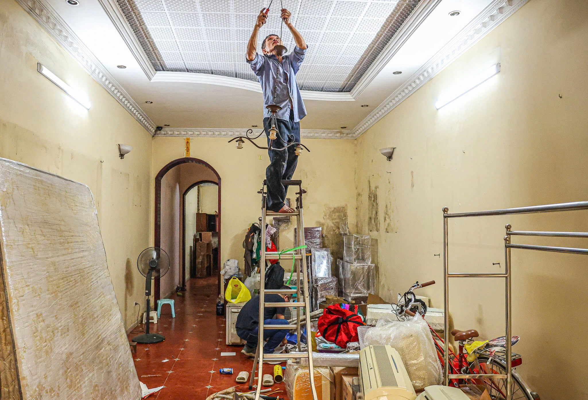 Một gia đình chủ động tháo dỡ đồ đạc trong nhà. Ảnh: TIẾN CƯỜNG