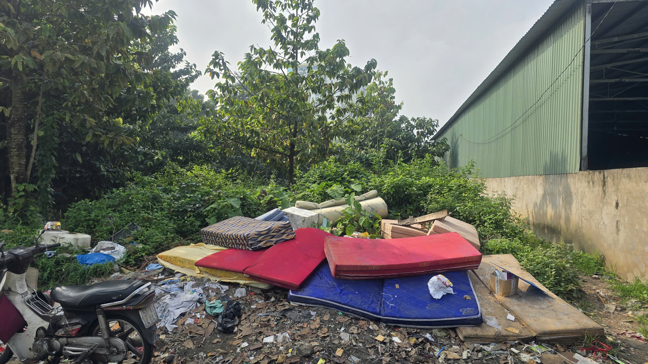 Theo ghi nhận, khu đất có diện tích khoảng 1.000 m², vốn là đất công từng được quy hoạch làm công viên cây xanh, nay trở thành điểm tập kết rác tạm thời. Trung bình mỗi ngày, có hàng chục lượt xe chuyên chở rác sinh hoạt tập kết tại đây. Rác được đổ thành đống, sau đó có xe tải lớn đến vận chuyển đi nơi khác xử lý.