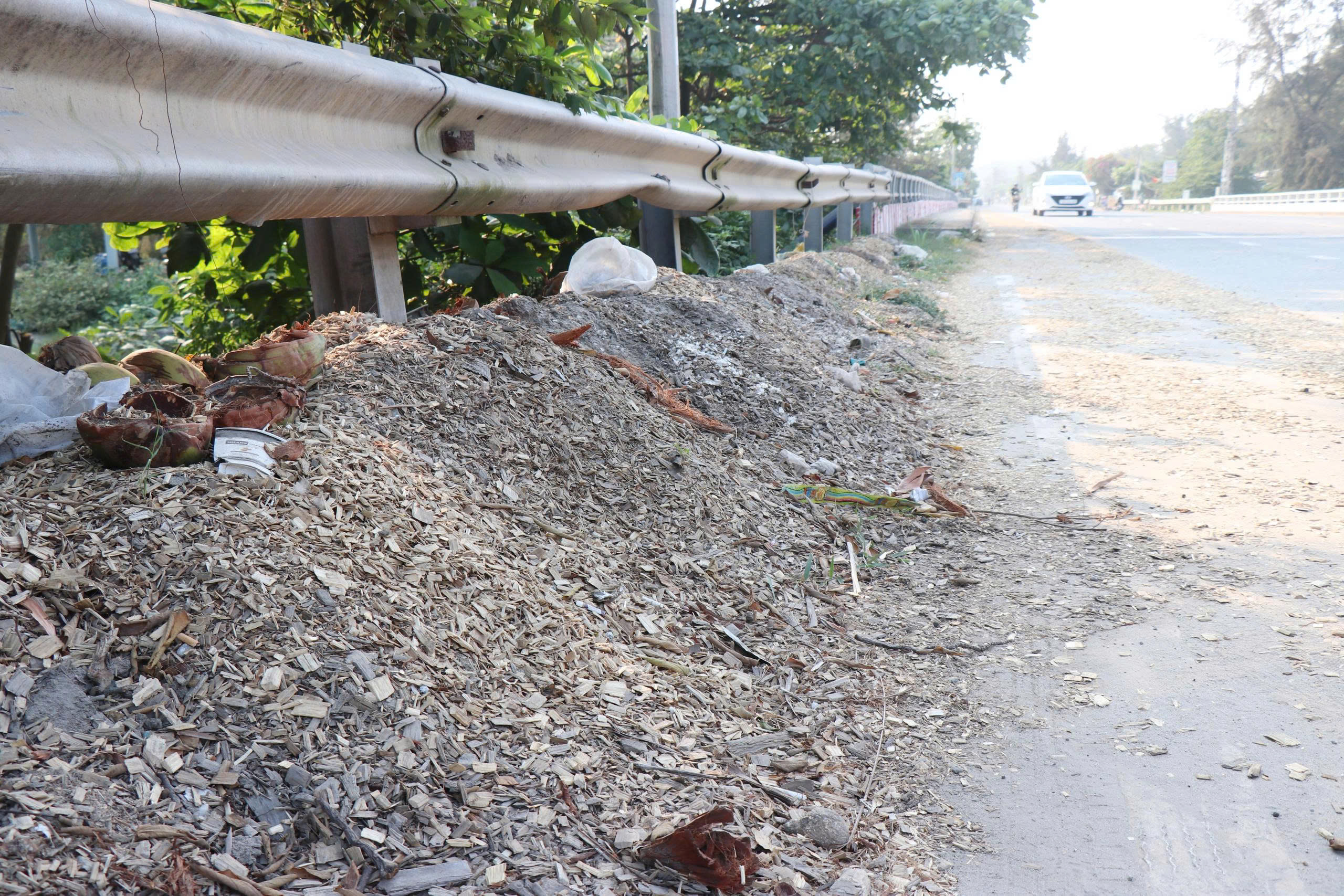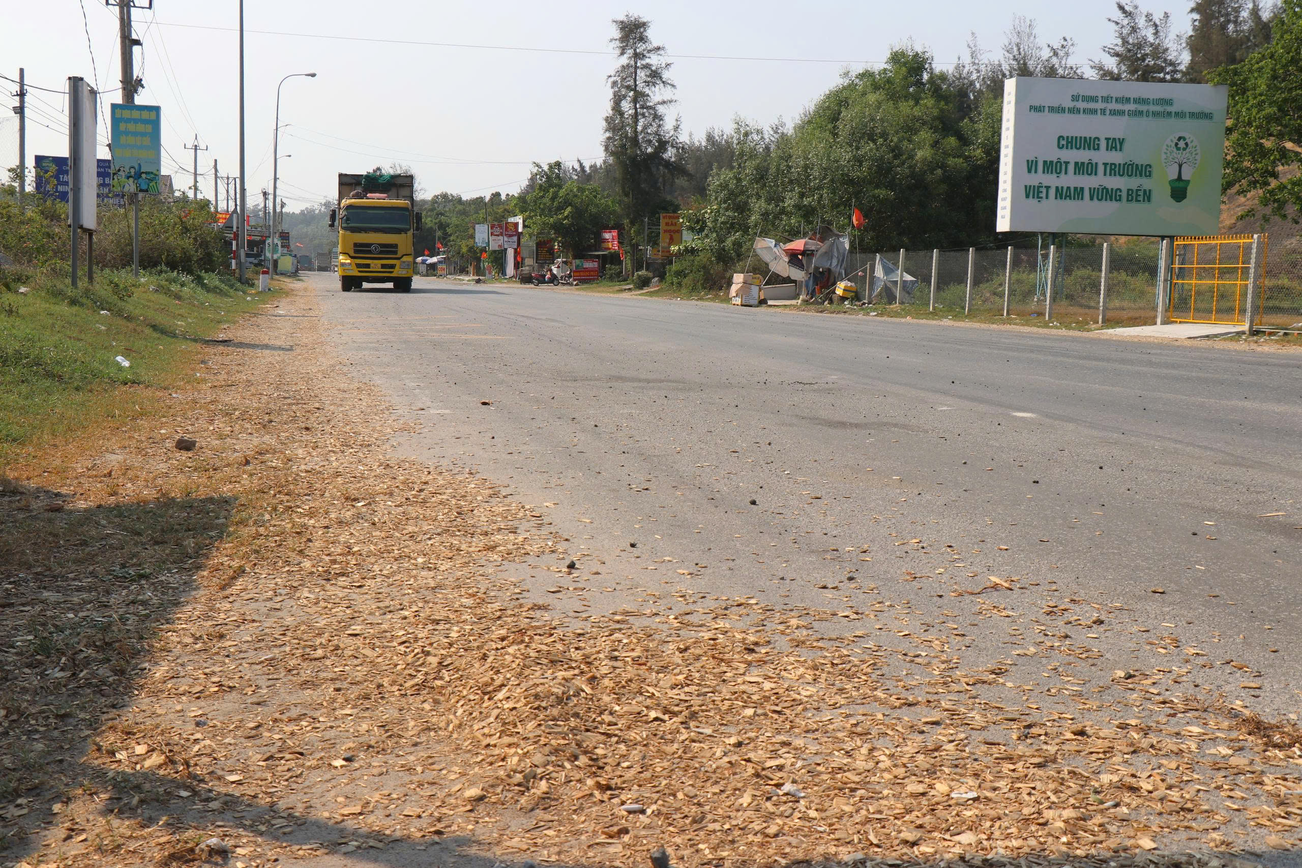 Ông Nguyễn Thịnh, thôn Tuyết Diêm 1, xã Vạn Tường cho biết, lượng dăm gỗ rơi xuống đường rất nhiều. "Có thời điểm mỗi ngày tôi quét đến 2 lần nhưng đâu lại vào đấy, nhất là ngày cao điểm tàu cập cảng ăn hàng", ông nói. Dăm rơi vãi tưởng không sao nhưng lại rất nguy hiểm khi lượng nhiều tồn trên đường dễ gây trượt ngã đối với người đi xe máy và gây ô nhiễm.