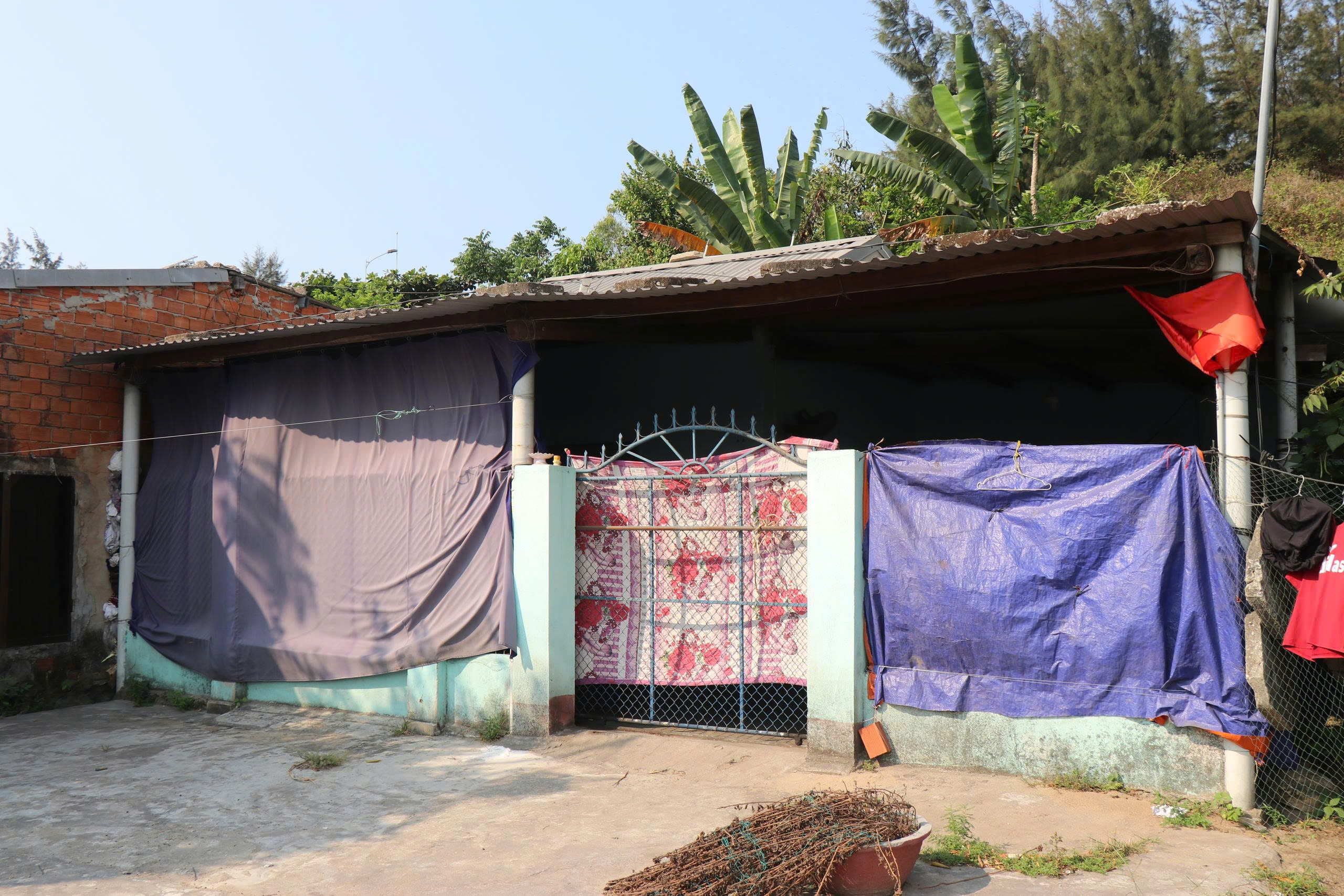 Nhiều hộ dân ở xã Vạn tường có nhà mặt tiền QL24C phải căng bạt che chắn để chống bụi và dăm gỗ rơi vào bên trong nhà.
