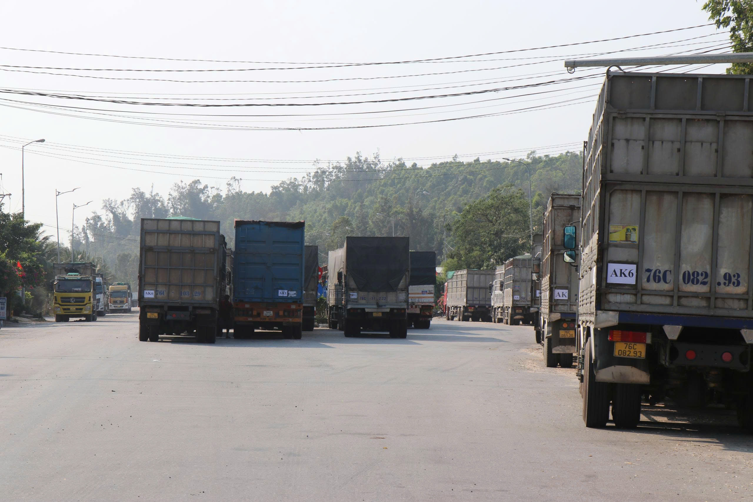 Ghi nhận tại khu vực cảng Dung Quất cho thấy, vào thời điểm tàu hàng cập bến, hàng trăm xe tải nối đuôi nhau trên QL24C, trong đó nhiều phương tiện che chắn sơ sài và tranh chạy để vào cảng sớm xuống hàng đã làm rơi vãi dăm gỗ trên đường.