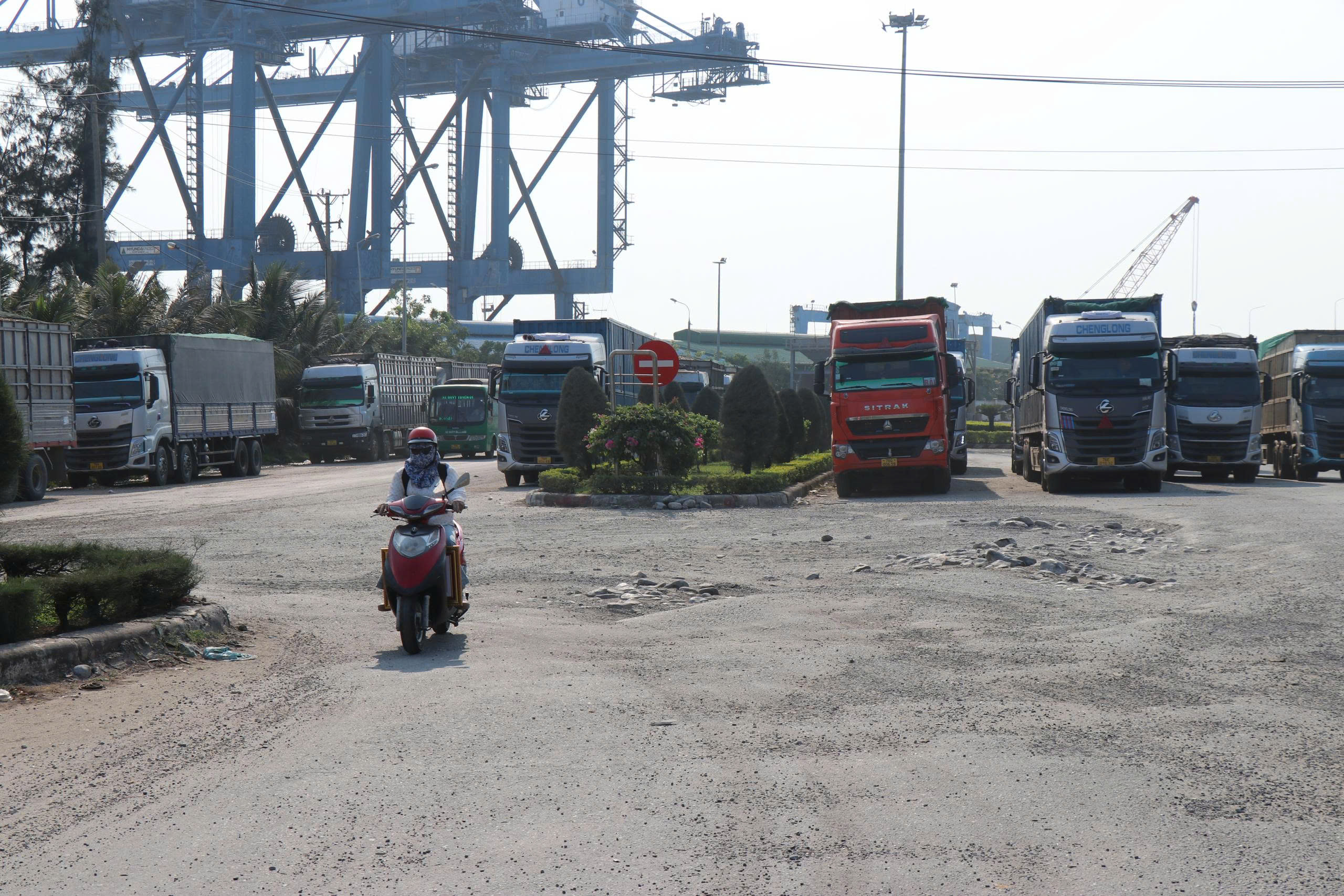 Nhiều phương tiện xe tải chở dăm gỗ đậu, đỗ và chạy ngược chiều để vào cảng gây nên tình trạng mất trật tự ATGT đoạn tuyến qua đây.