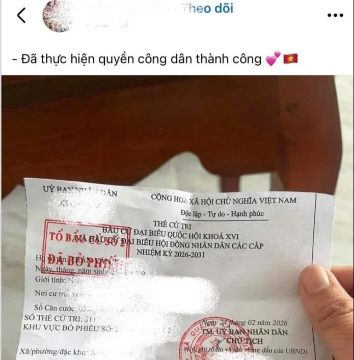 Sau khi hoàn thành việc bỏ phiếu bầu cử đại biểu Quốc hội khóa XVI và đại biểu Hội đồng nhân dân các cấp nhiệm kỳ 2026-2031, nhiều người có thói quen chụp ảnh lưu niệm, trong đó có việc đăng tải hình ảnh thẻ cử tri lên các trang mạng xã hội để chia sẻ niềm vui và sự tự hào khi tham gia ngày hội toàn dân.