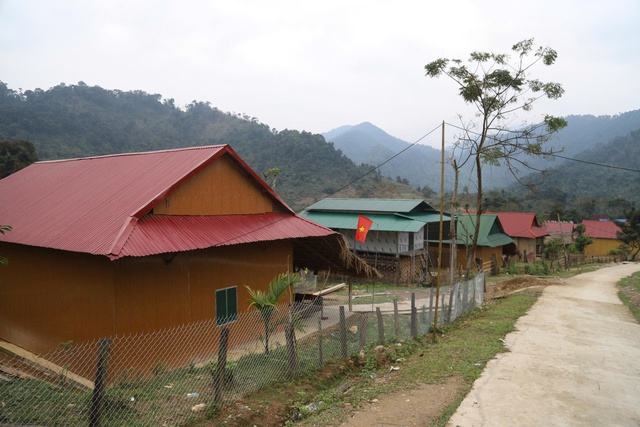 Căn nhà lắp ghép của cụ La Thị Hợi (82 tuổi) và con trai út Lê Văn Thành nằm lọt thỏm giữa bản Búng, ngay bên cạnh căn nhà tranh vách nứa cũ. Trong căn nhà ba gian mới rộng 50m2 được Nhà nước xây tặng, đồ đạc được sắp đặt gọn gàng, ngăn nắp. Ngồi bên hiên nhà khung thép bê tông, tường nhựa cách nhiệt, lợp mái tôn kiên cố, cụ Hợi nói cụ vẫn ngỡ mình đang trong mơ.