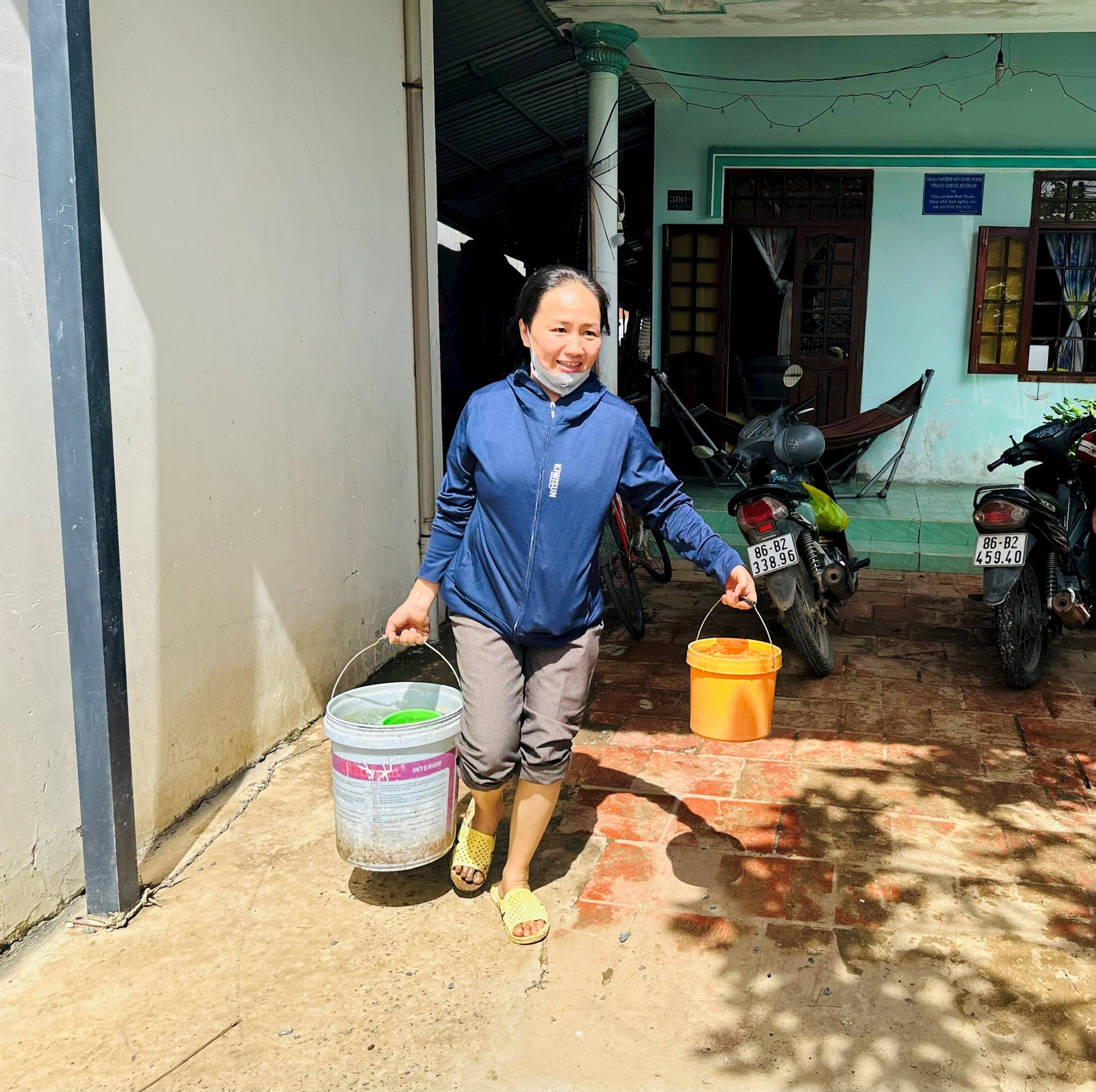 Bà con xã Bắc Bình tất bật lau dọn lại nhà cửa sau cơn lũ