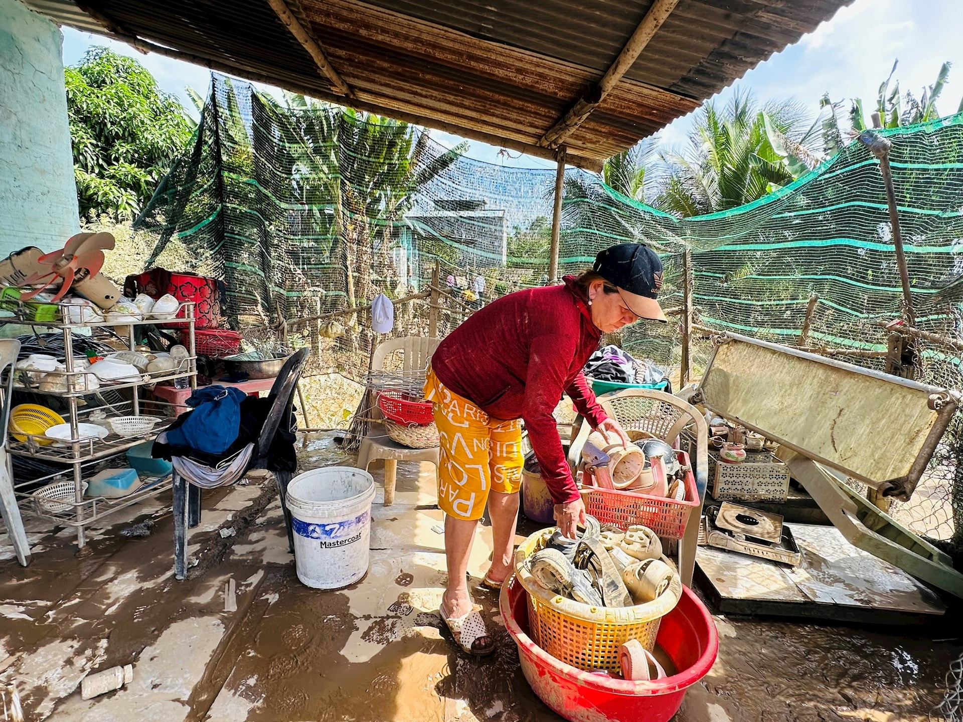 Ngay sau khi nước lũ rút, các hộ dân đều tập trung dọn dẹp nhà cửa, cố gắng gom lại những vật dụng còn sử dụng được.