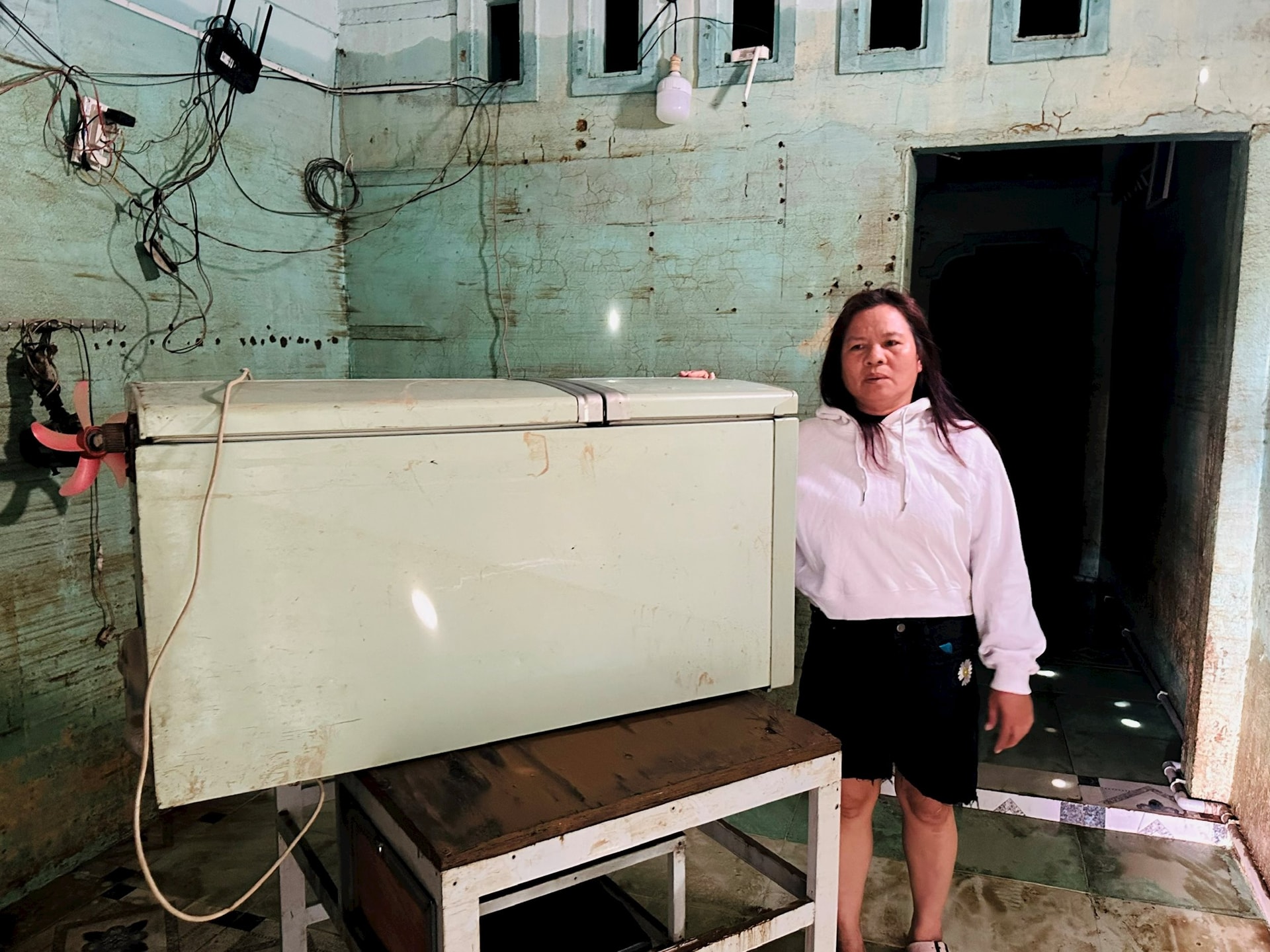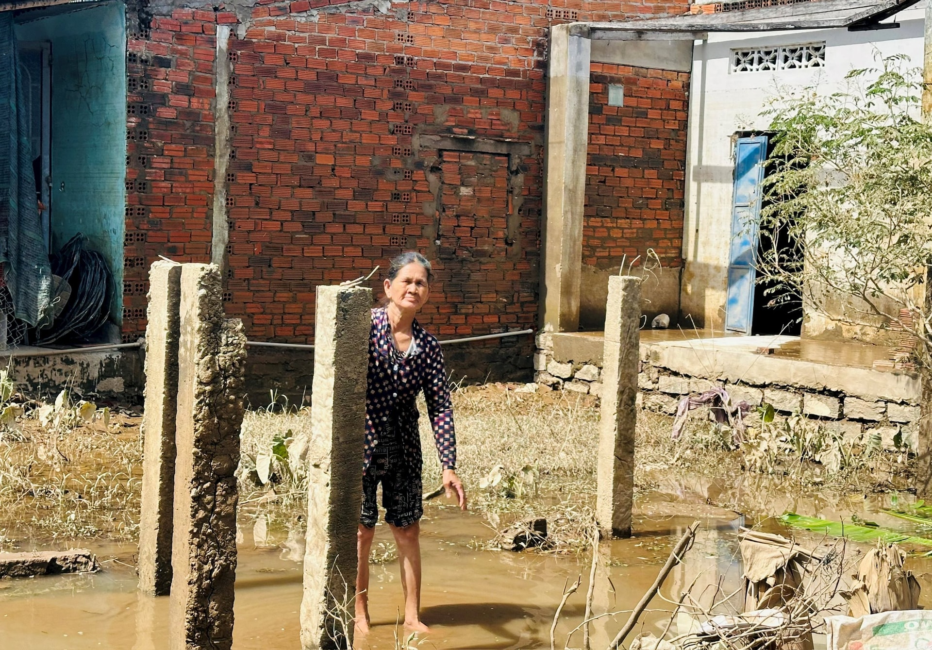 Bà Hồ Thị Hồng, một trong những hộ dân bị ngập sâu do lũ tại xã Bắc Bình và vật dụng còn sót lại sau lũ những cũng không sử dụng được.