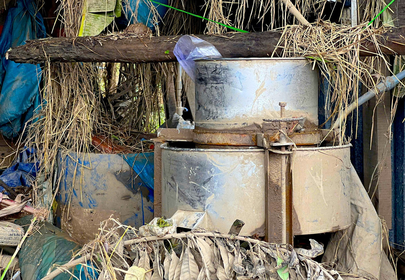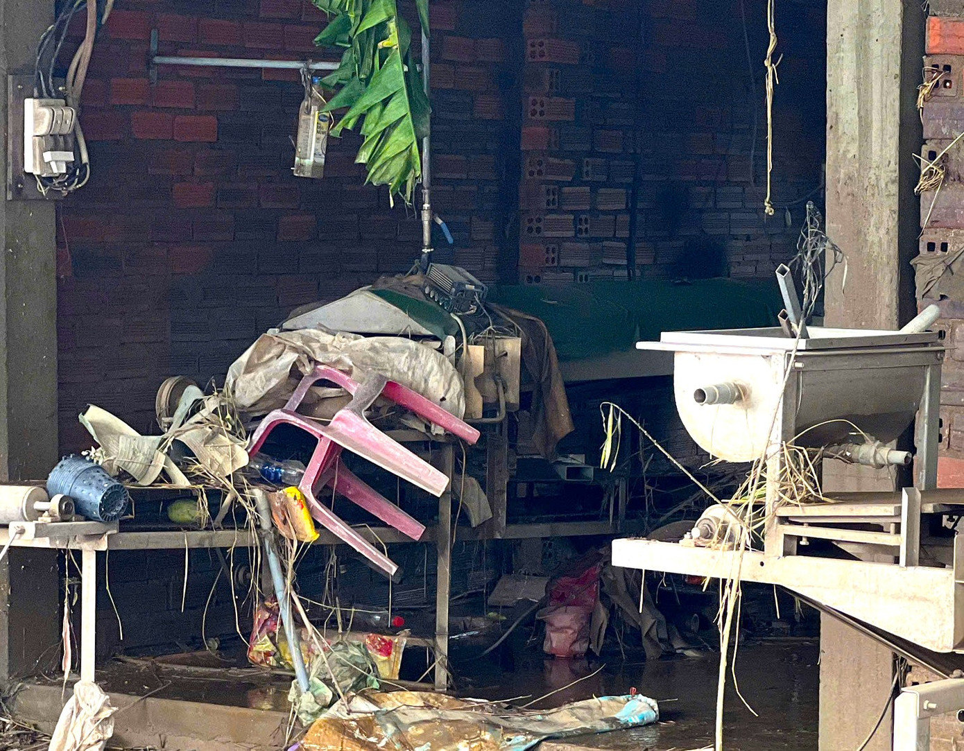 Anh Chí cho biết, phải đợi nắng, bơm nước chà sạch từng cái mành mới có thể sử dụng phơi bánh tráng lại được. Theo anh Chí, trong thôn có khoảng 5 cơ sở làm bánh tráng như mình, tất cả đều bị thiệt hại.