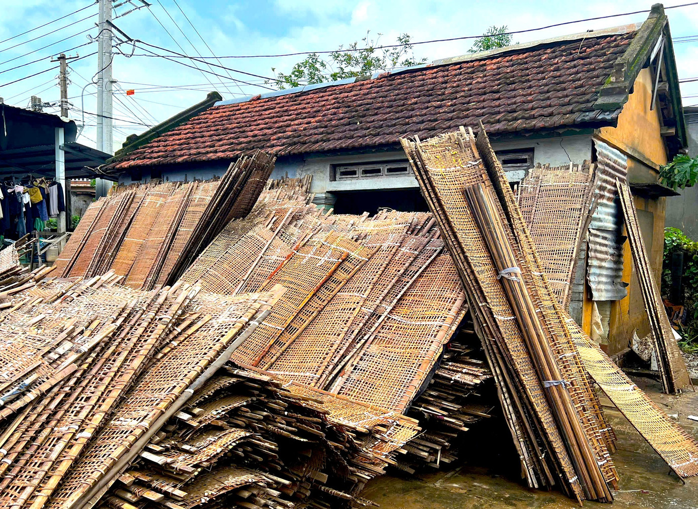 Hàng trăm cái mành phơi bánh đa của chị Anh đã hư hỏng, phải sửa lại hoặc thay mới hoàn toàn.