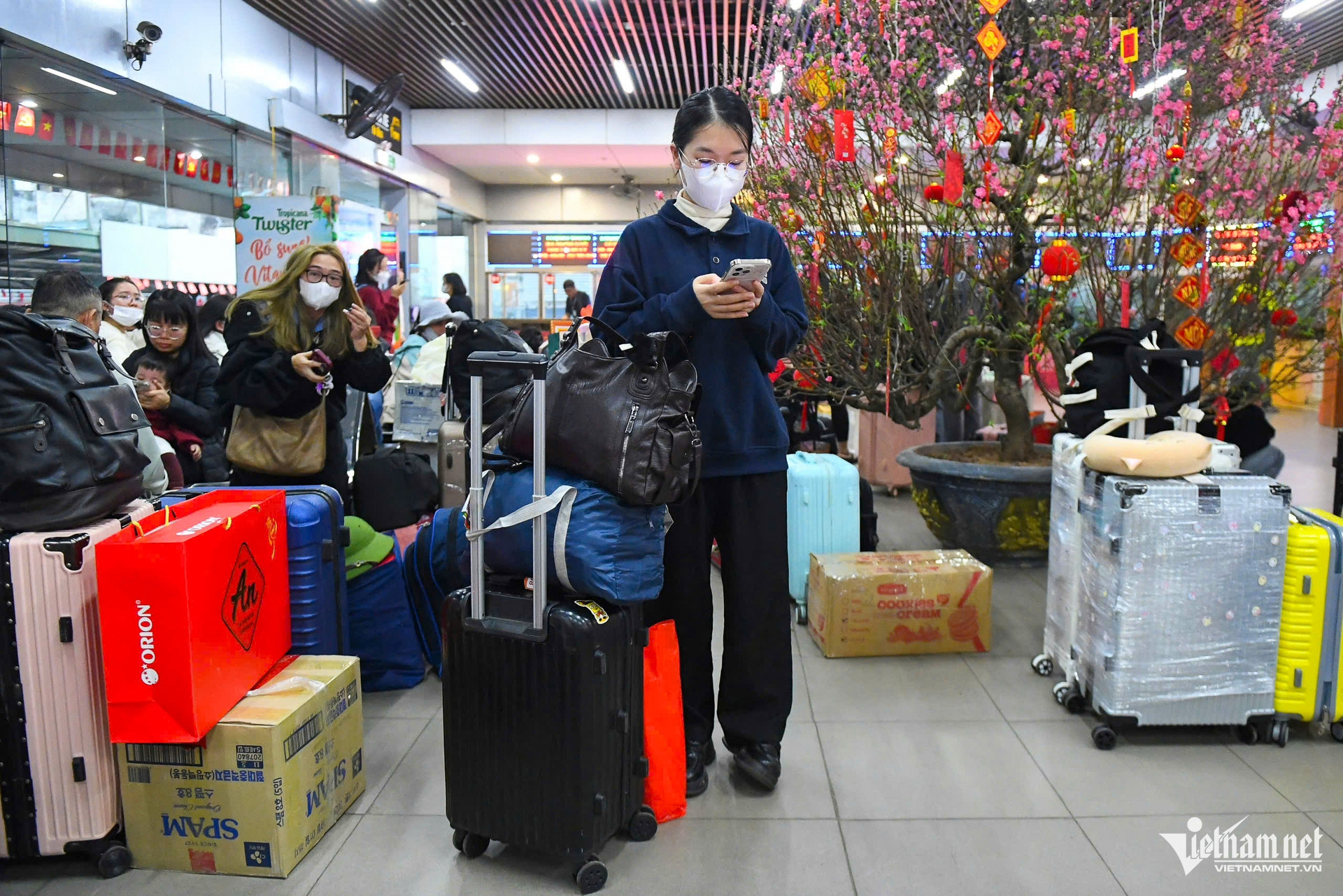 Hà (quê Hà Tĩnh) lần đầu tự ra bến xe khách đón xe về quê ăn Tết. Trước khi lên xe, cô cẩn thận kiểm tra lại hành lý và giỏ quà mang về cho bố mẹ. “Tôi háo hức vì nghĩ rằng chỉ sáng mai thôi là được sum vầy bên gia đình”, Hà chia sẻ.