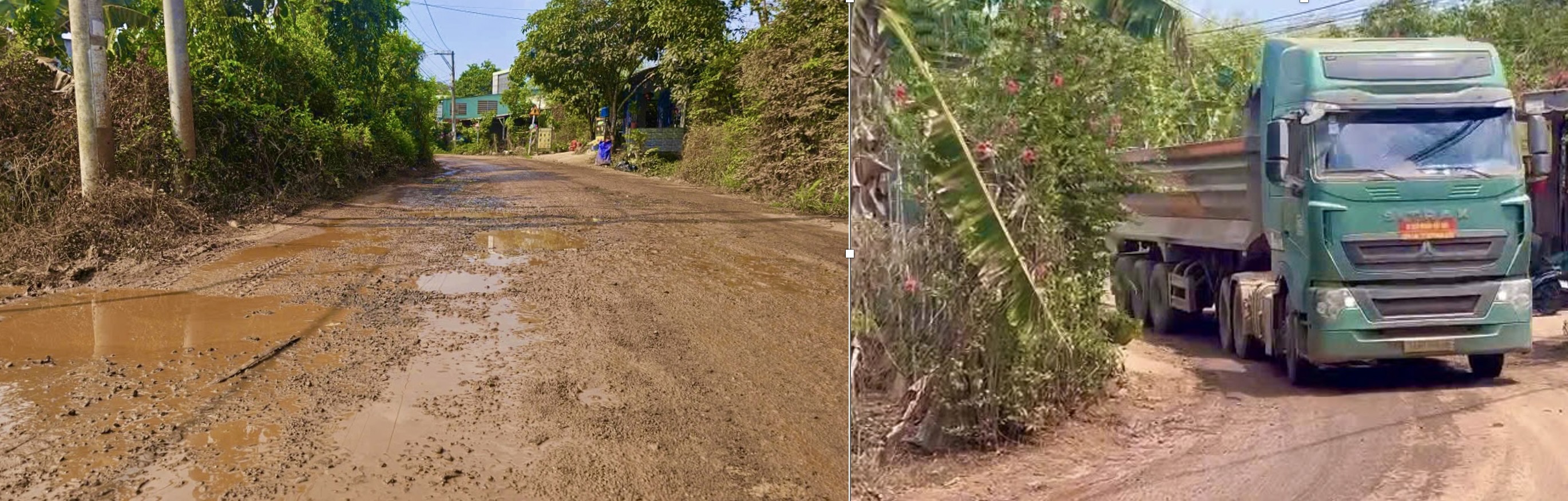 “Mỗi lần đi lại thấy xe tải ben, xe đầu kéo chúng tôi phải tấp vào sát lề. Không những vậy, con đường xuống cấp xuất hiện những chiếc hố và mỗi lần xe tải đi lại đường bụi mù mịt. Đặc biệt bọn trẻ đi học rất sợ”, một người dân bức xúc.