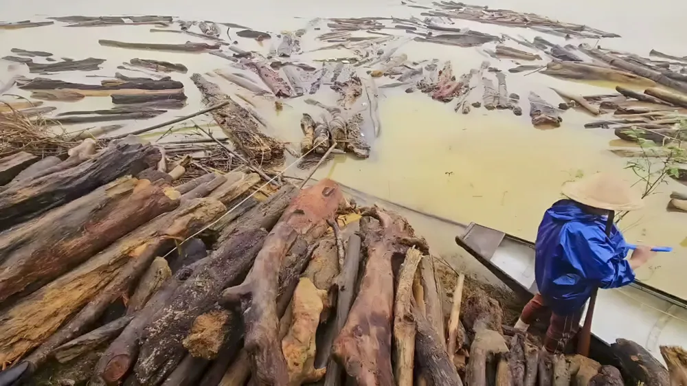 "Hôm nào may mắn trúng luồng gỗ lớn thì vớt được gần cả tấn, còn không thì chỉ được vài bó. Thu nhập dao động vài trăm nghìn đồng mỗi ngày, đủ để trang trải sinh hoạt" - anh Ngân nói.