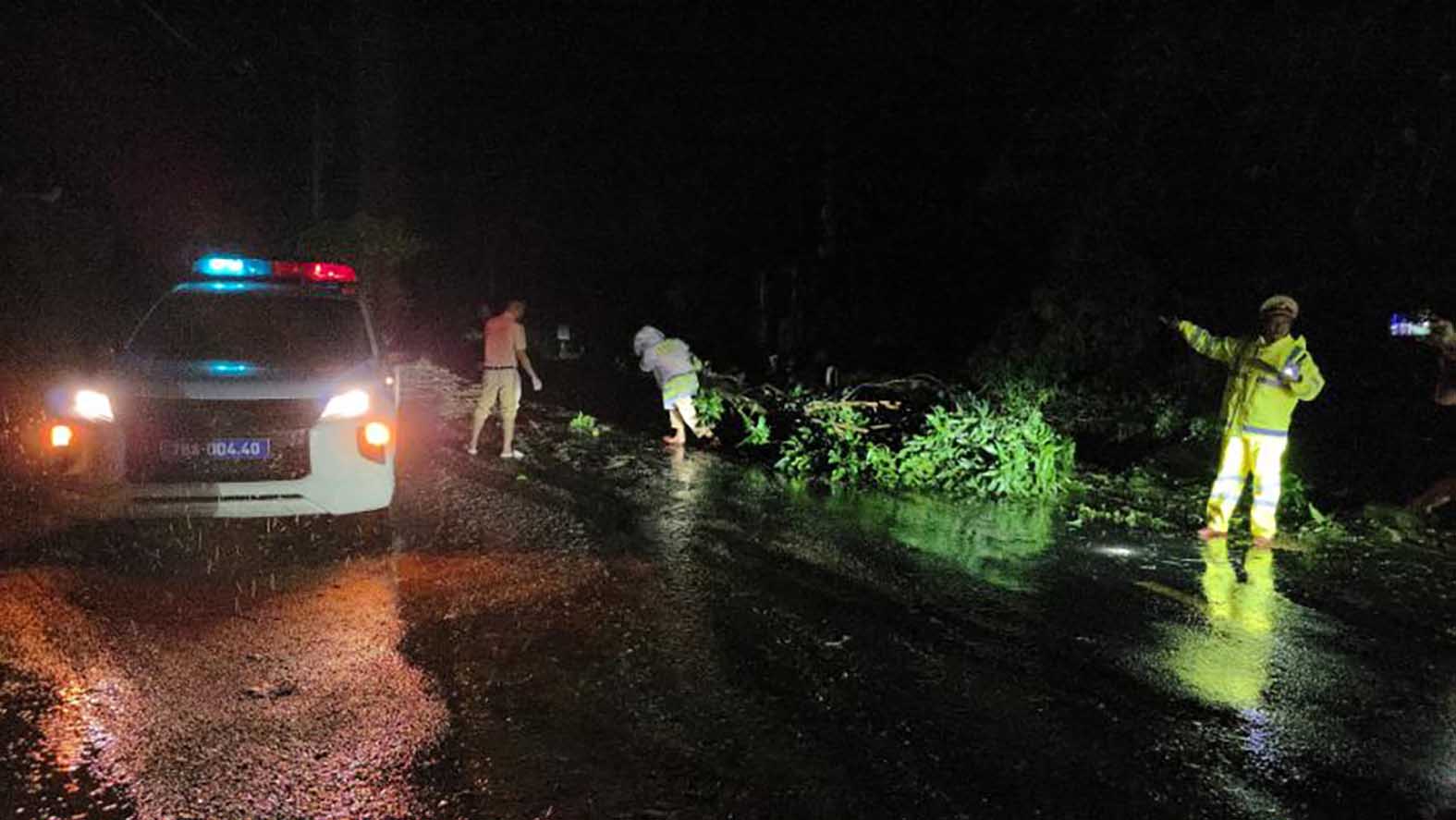 Lực lượng CSGT dọn cây đổ tại xã Tuy An Bắc, tỉnh Đắk Lắk. Ảnh: MAI CƯỜNG