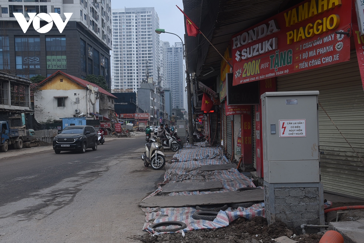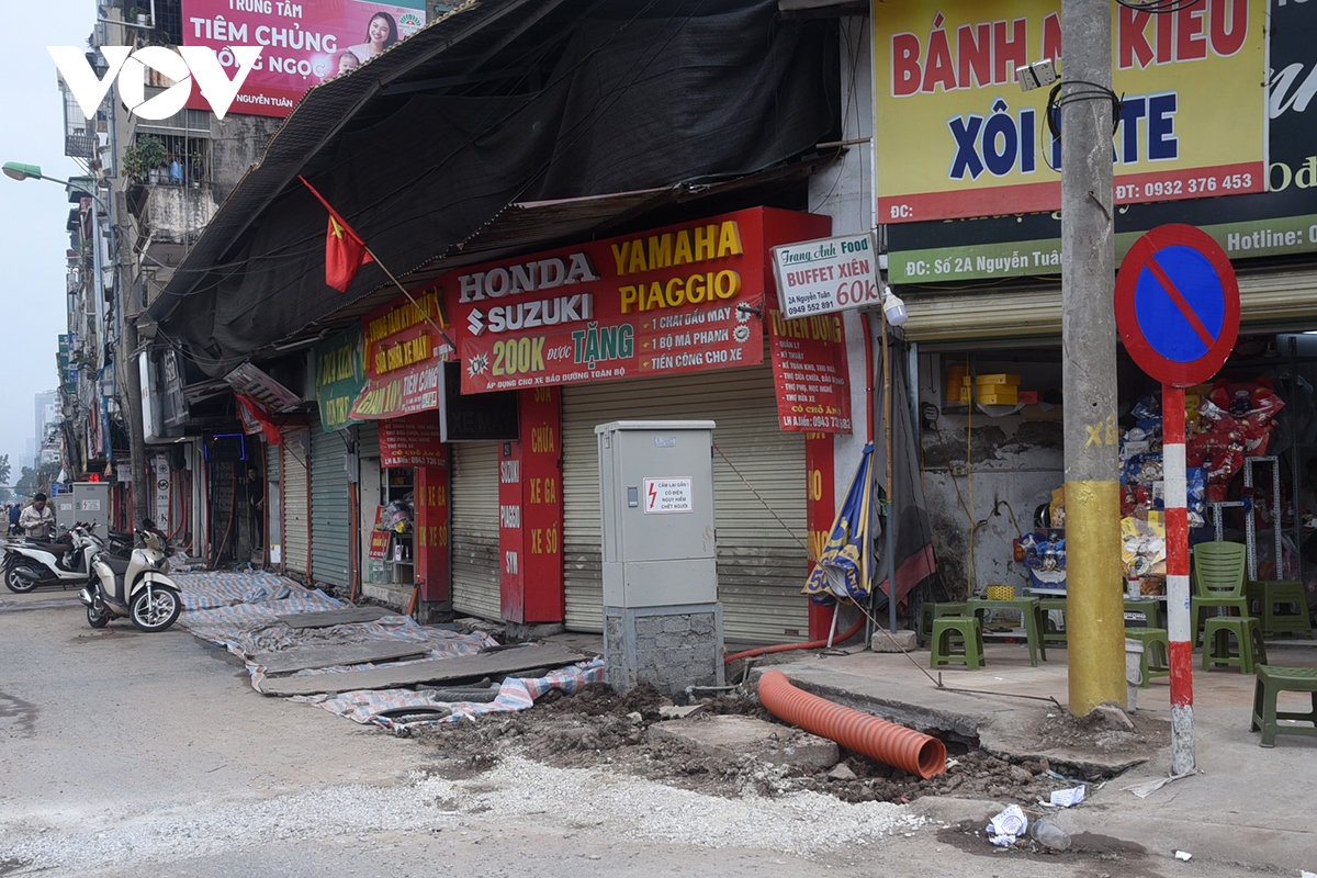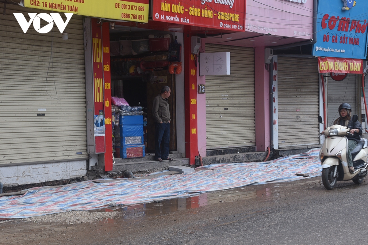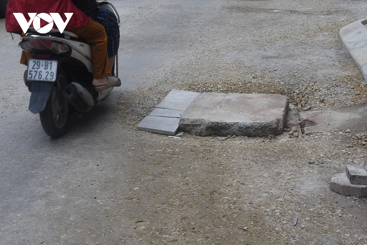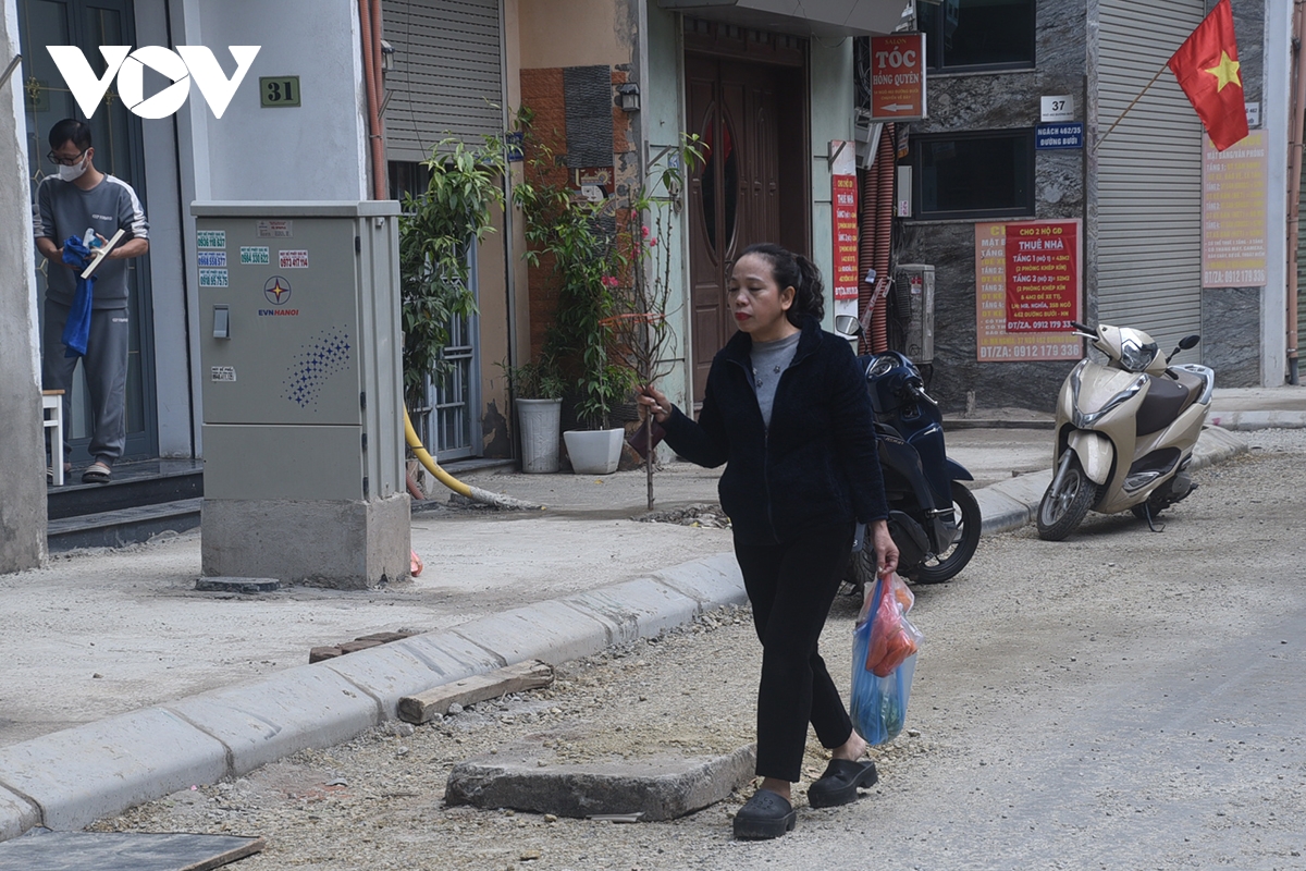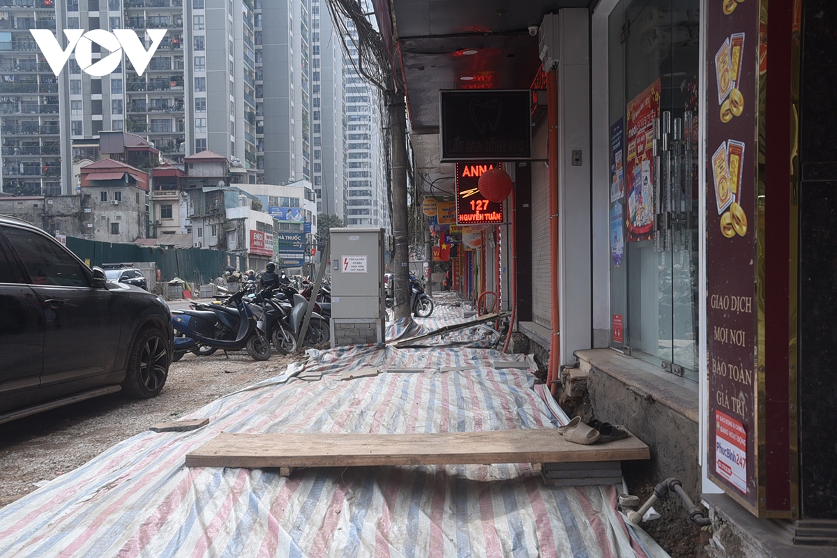 Theo người dân những ngày trước Tết nơi đây đào đường ống cáp ngầm, đường nước... đất đá nhão nhoét họ chỉ kịp lấp lại và che chắn tạm bợ cho ăn dân đi lại thế này mấy ngày Tết. “Tôi cũng không biết họ đã thi công xong chưa, ra Tết lại móc đất lên làm lại thì lại khổ dân”, bà Hà - một tiểu thương trong khu vực chia sẻ.