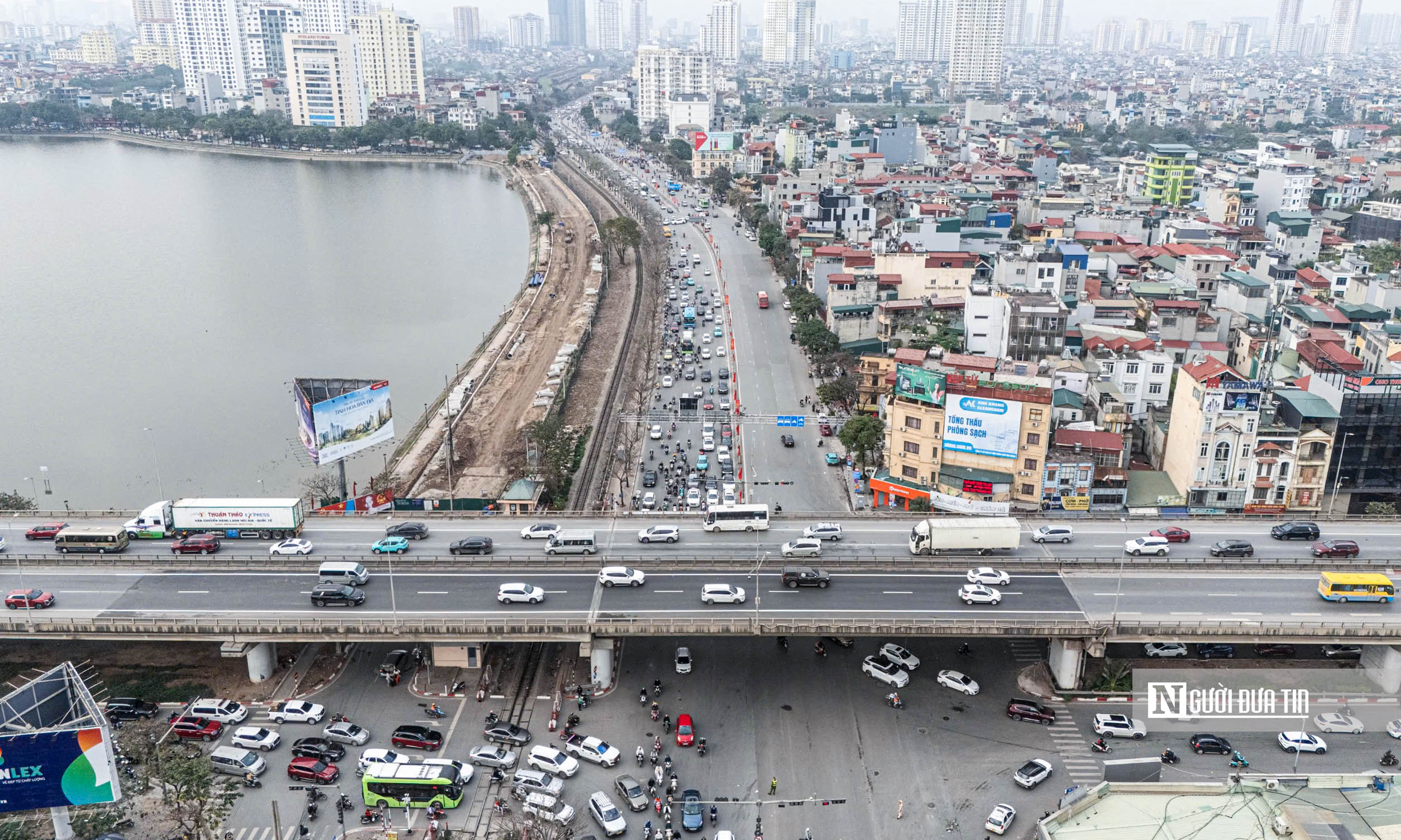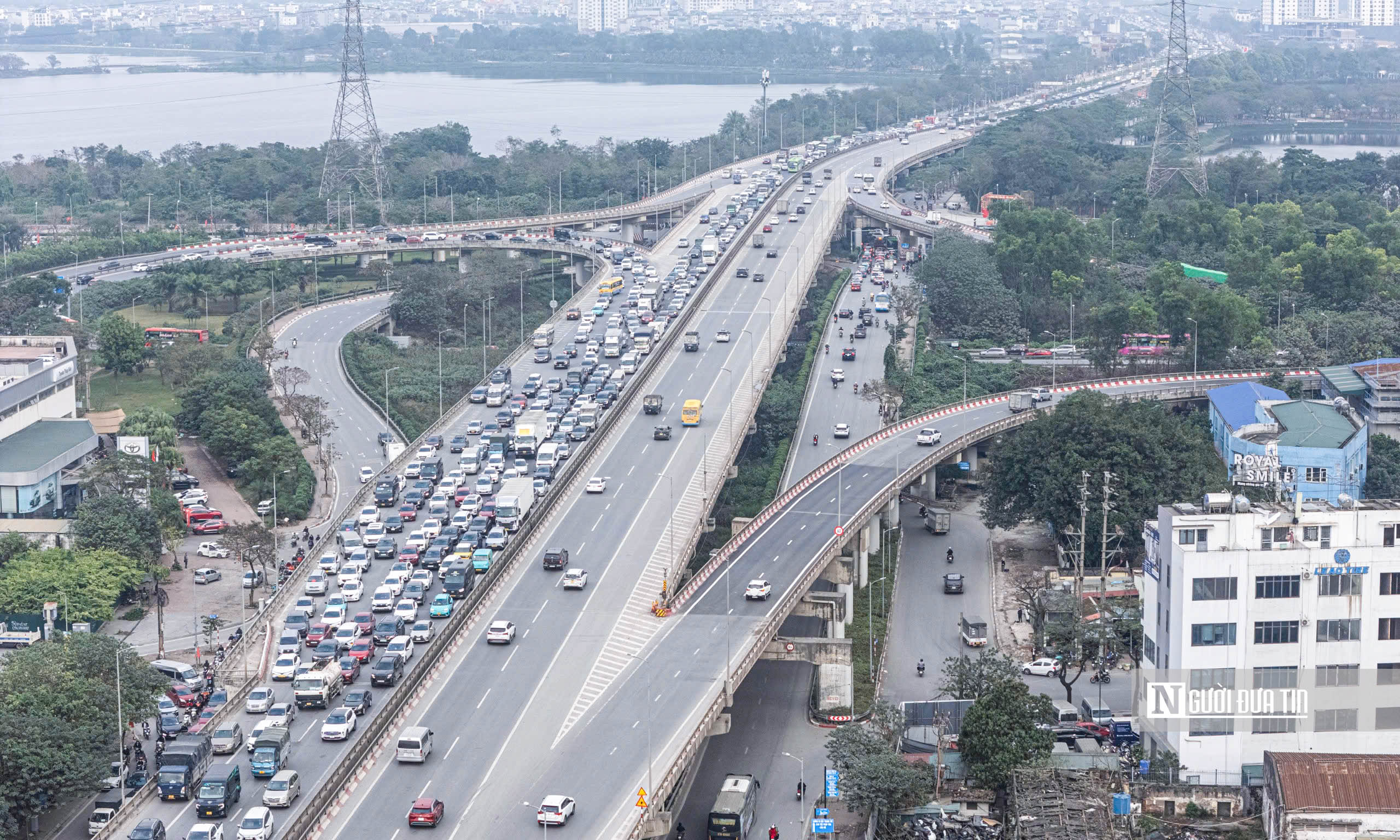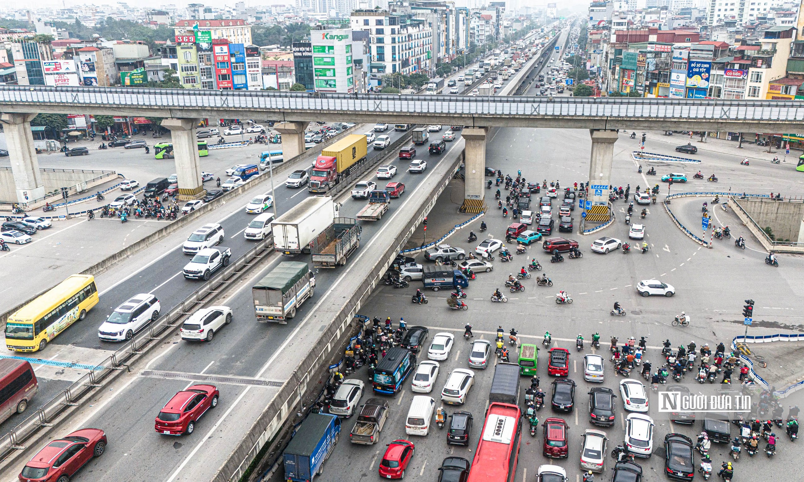 Giao thông đông đúc tại nút giao Nguyễn Trãi - Khuất Duy Tiến - vành đai 3 trên cao.