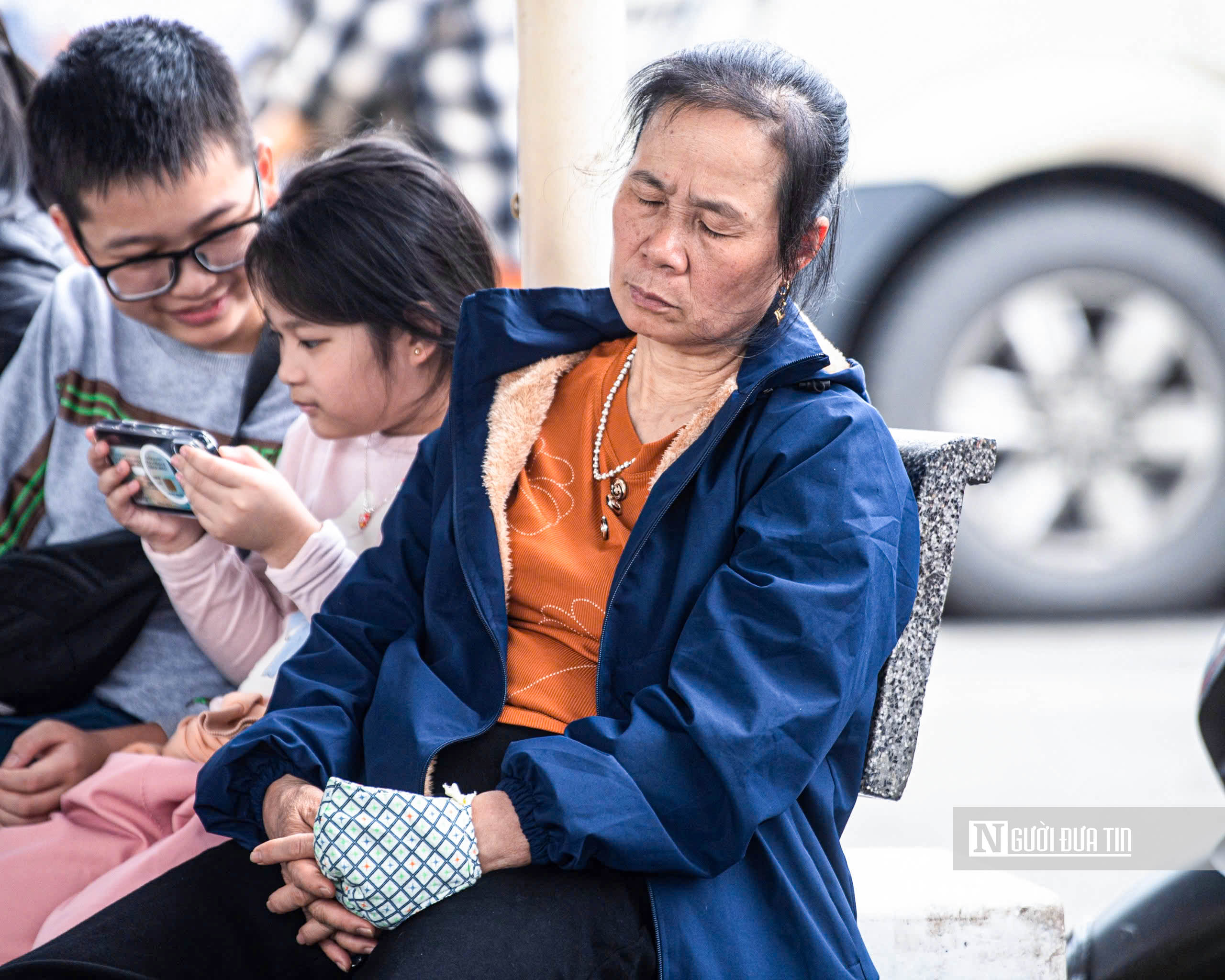 Người dân ngủ gật trong lúc chờ đợi chuyến xe về quê ăn Tết.